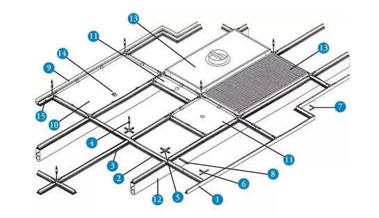當龍骨安裝一定區域后,需進行臨時定位,用重錘矯正吊頂的中心與十字基準線,偏差需在一毫米范圍內。可選擇柱子或土建鋼構和墻為定位點。
