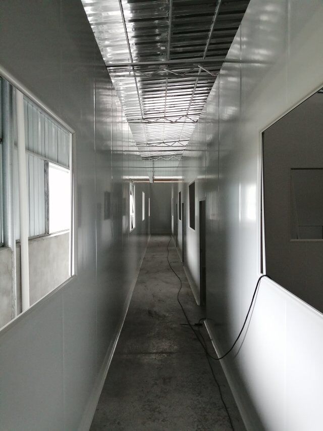 什邡昊陽農業發展有限公司廠房裝修現場,打膠立墻板