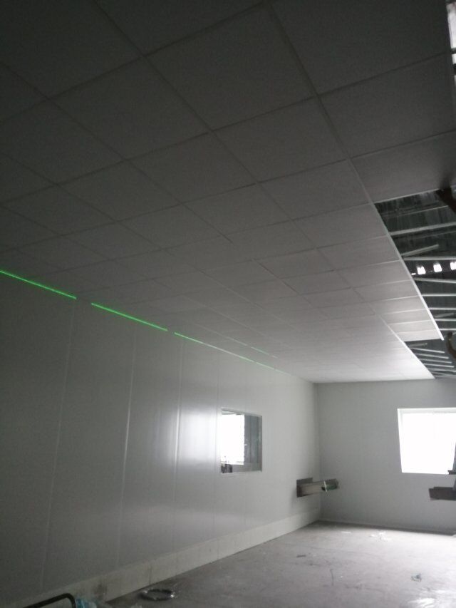 什邡昊陽農業發展有限公司廠房裝修現場,吊頂施工中
