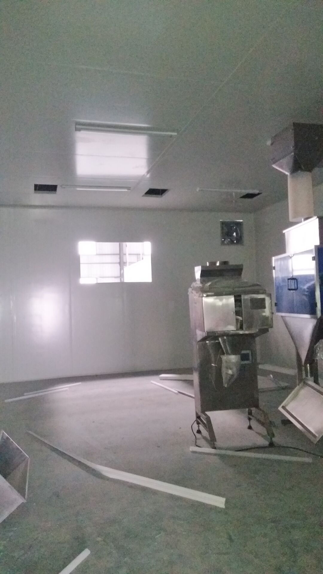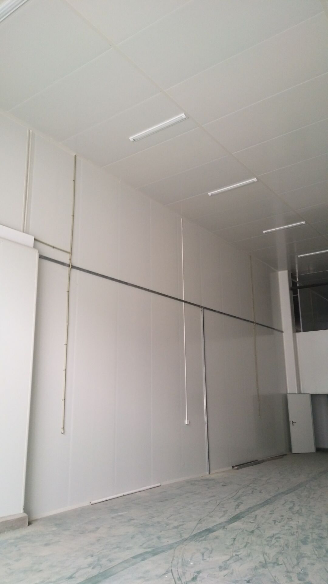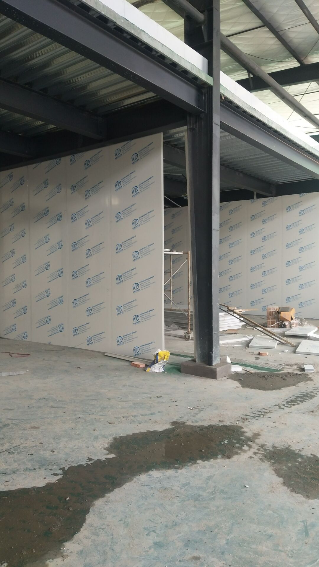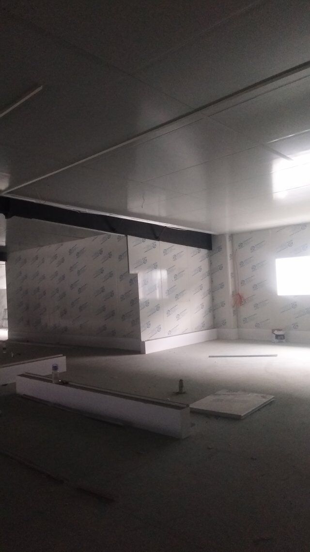 成都天廚生物科技有限公司廠房裝修現(xiàn)場,墻板施工中