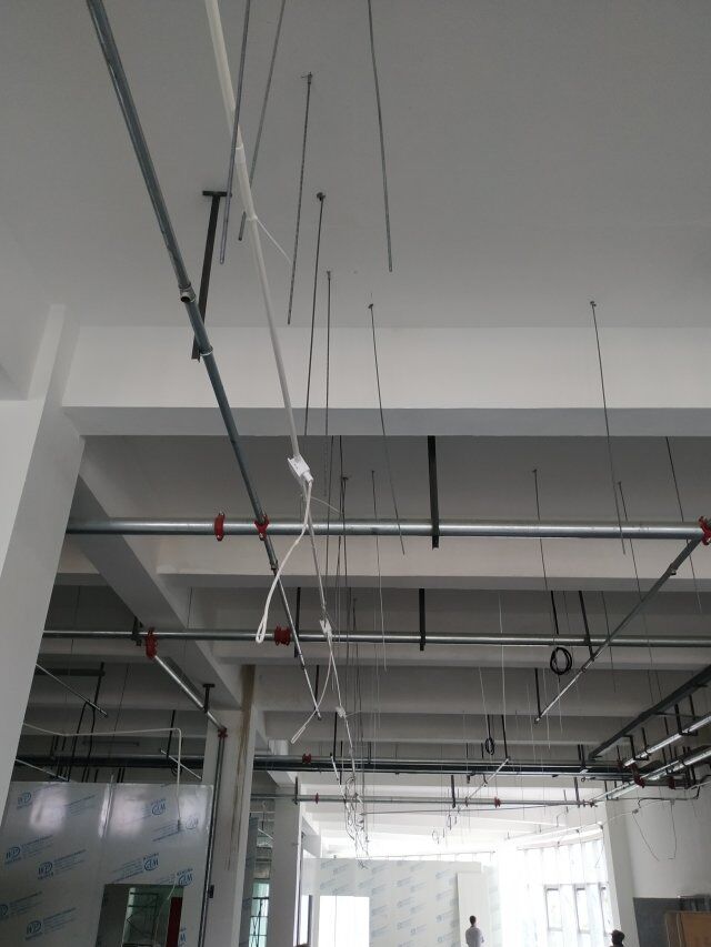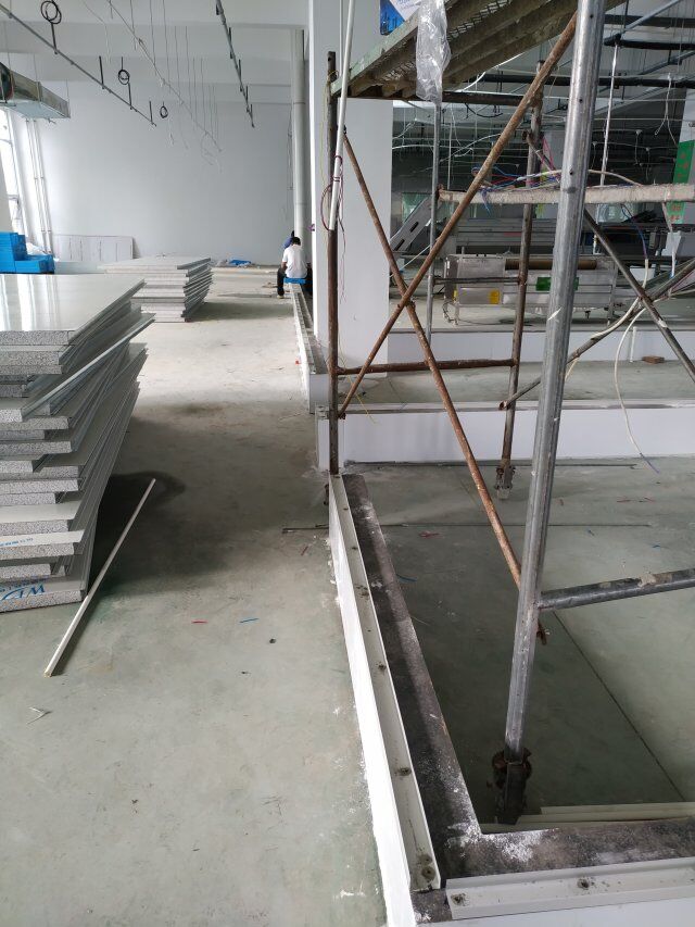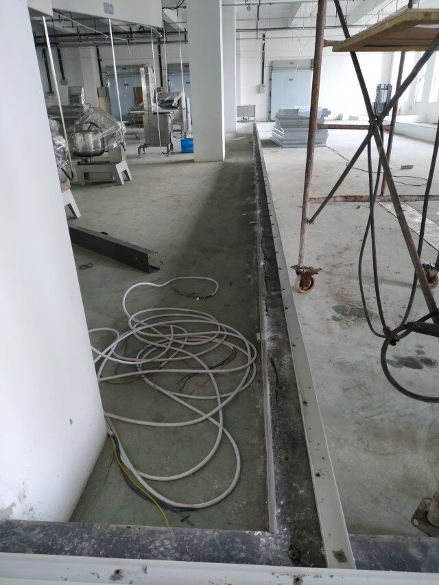 青島盛客隆食品有限公司廠裝修,吊筋安裝完成,墻板開孔
