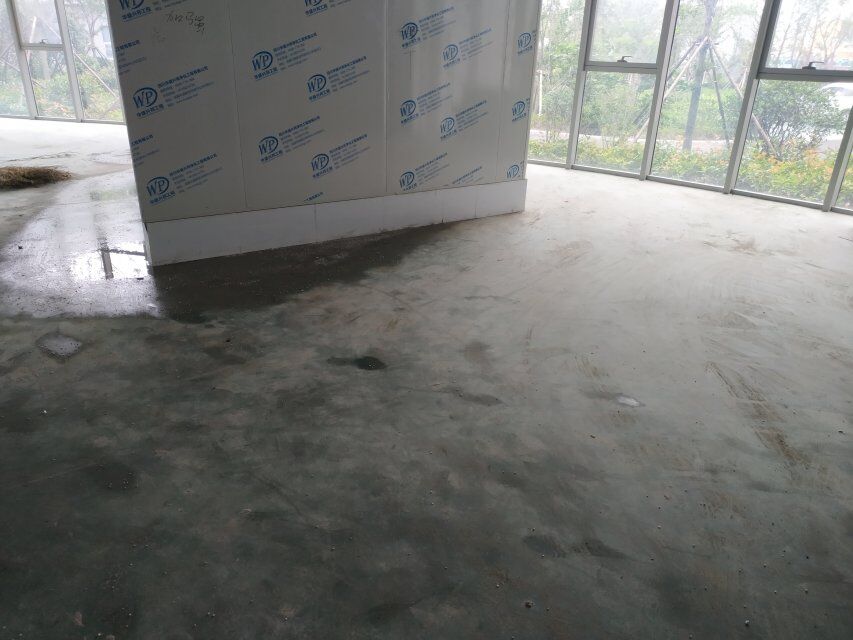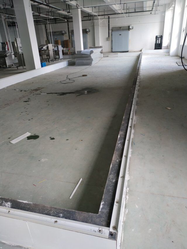 青島盛客隆食品有限公司廠房裝修現場,洗消池安裝,撕膜完成