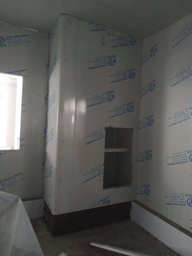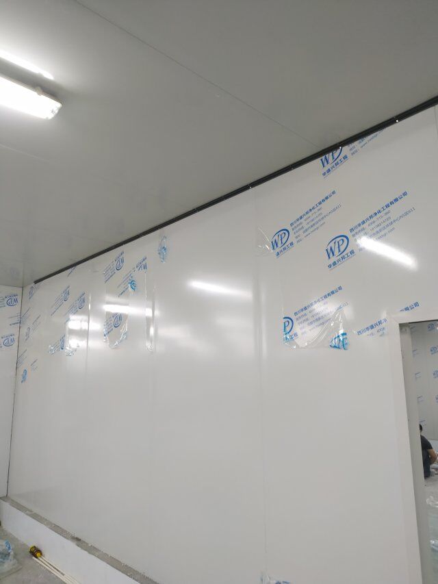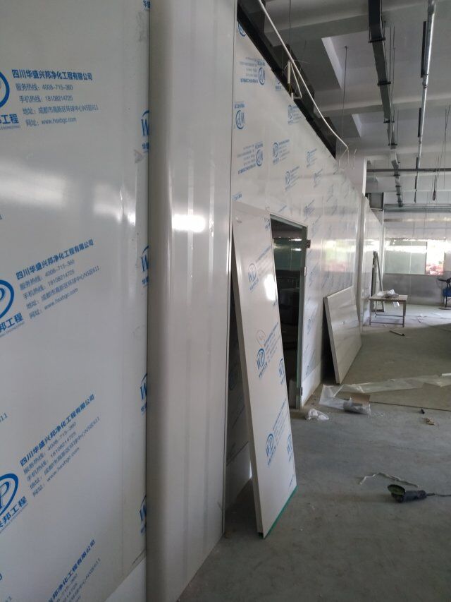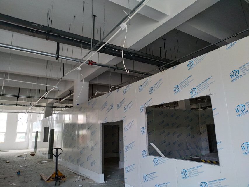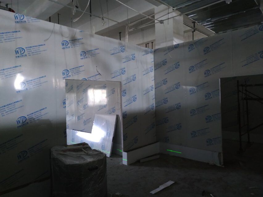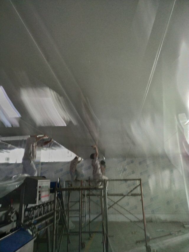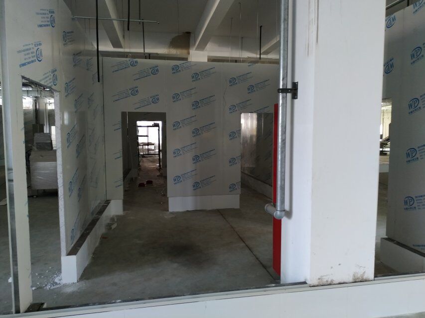 青島盛客隆食品有限公司廠房裝修現場,頂板,墻面施工