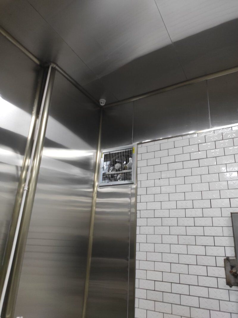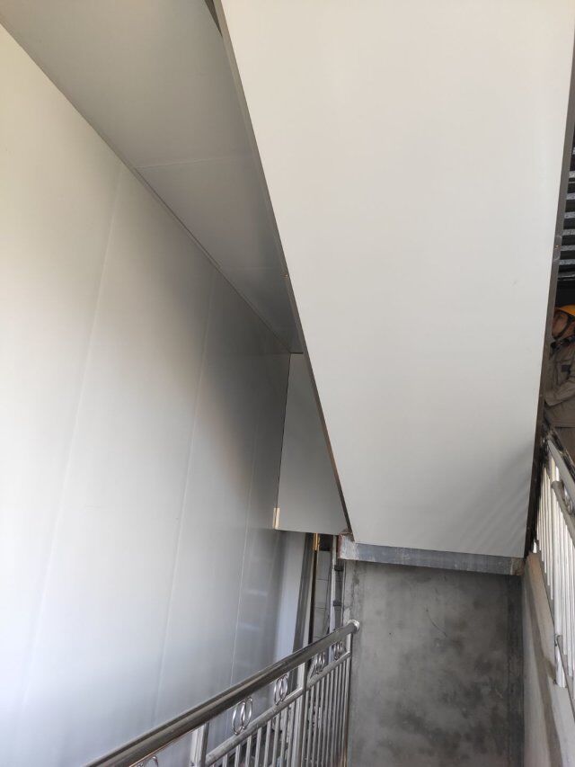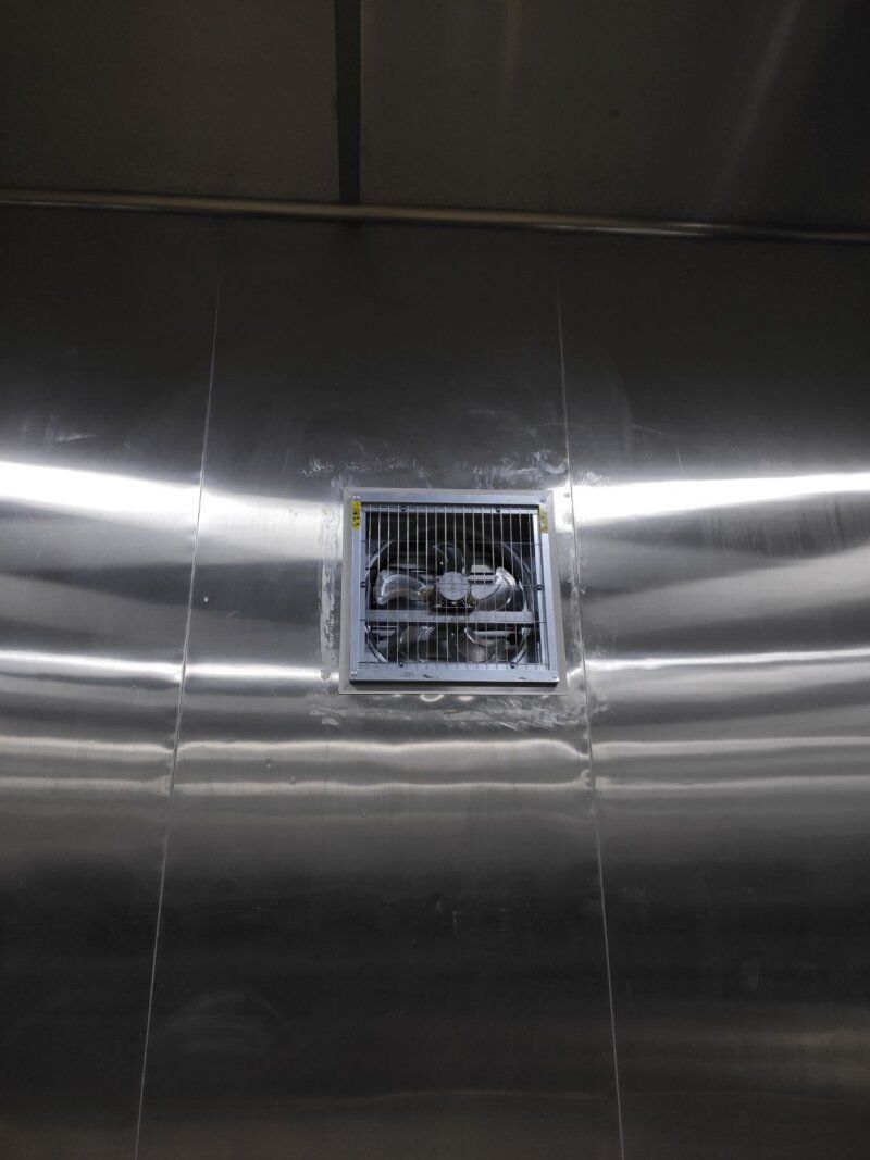 1.參觀走廊圓弧膠水完成打膠施工 2.墻體排風扇安裝完成 3.換氣扇安裝完成