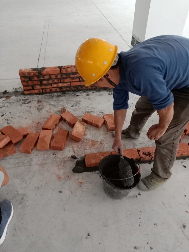 1、室內(nèi)抬高區(qū)域防水施工完成, 2、排水溝兩邊磚體砌筑完成。