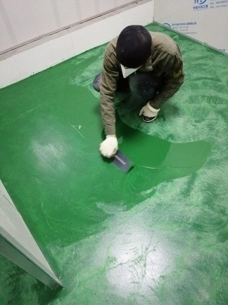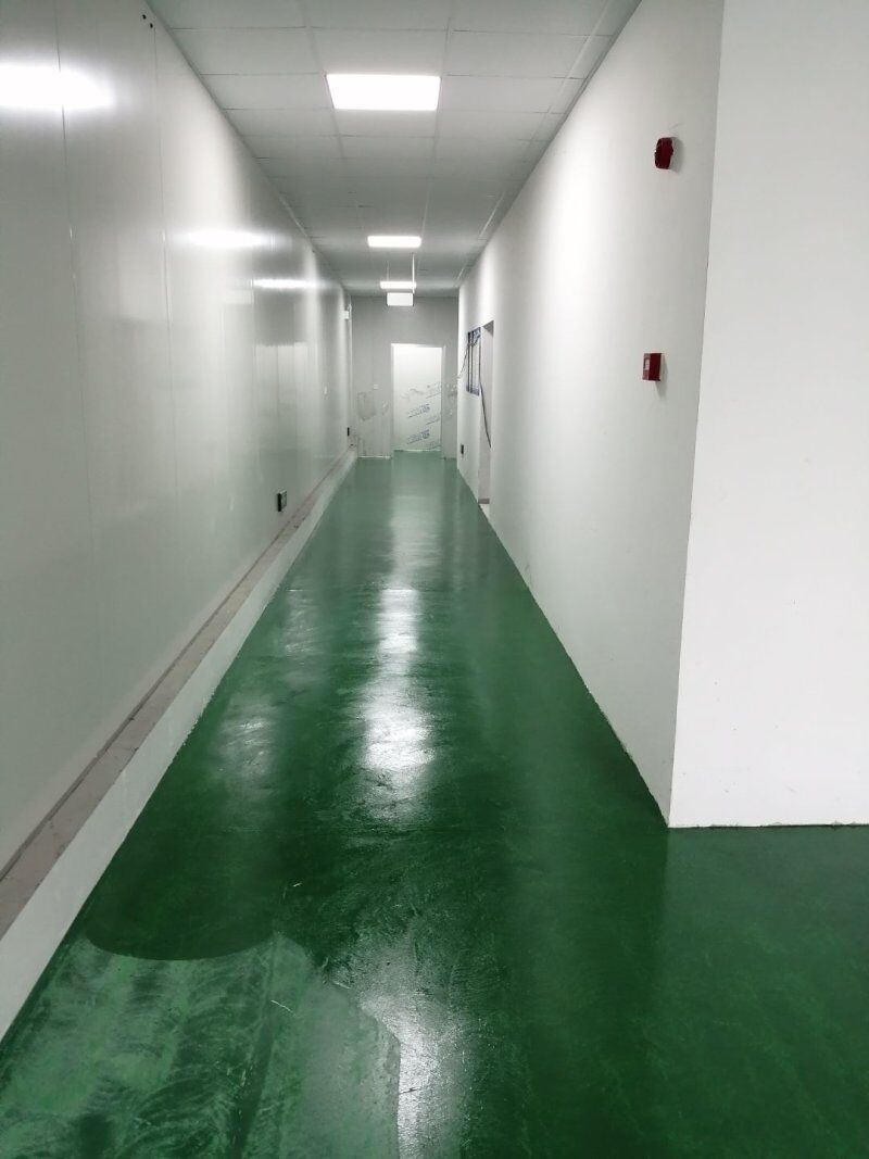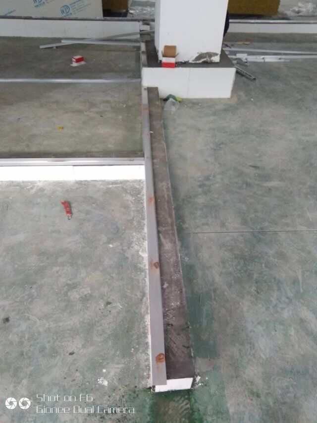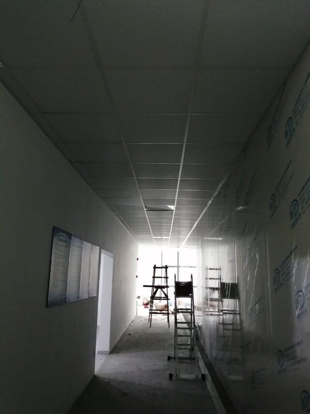 成都王老鴨食品有限公司廠房裝修現(xiàn)場,放線完成,隔斷擋水施工