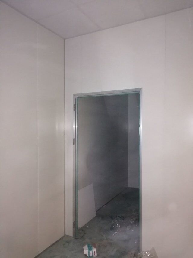 1.墻板完成百分之八十 2.吊頂?shù)踅畎惭b完成,3.門料下料切角施工