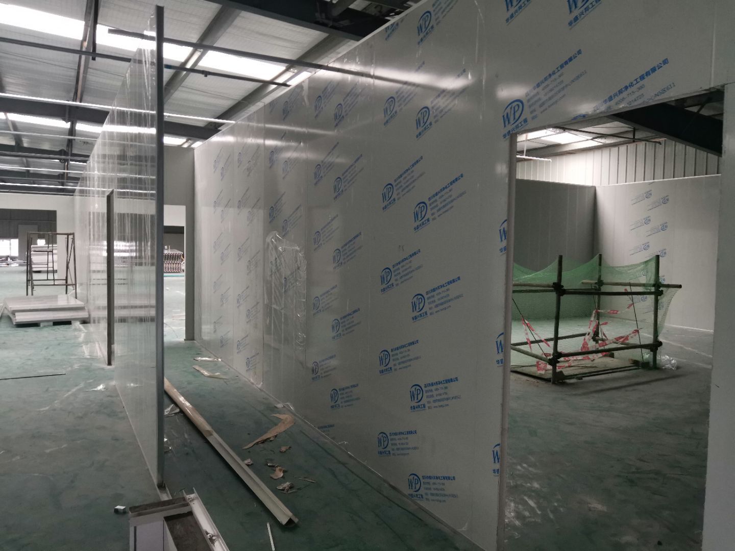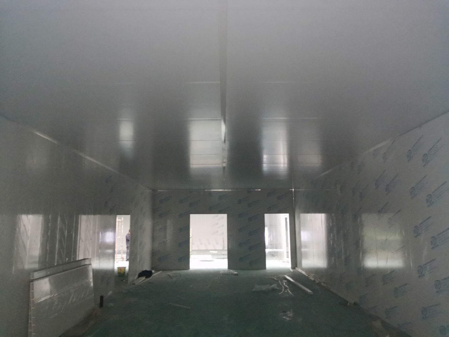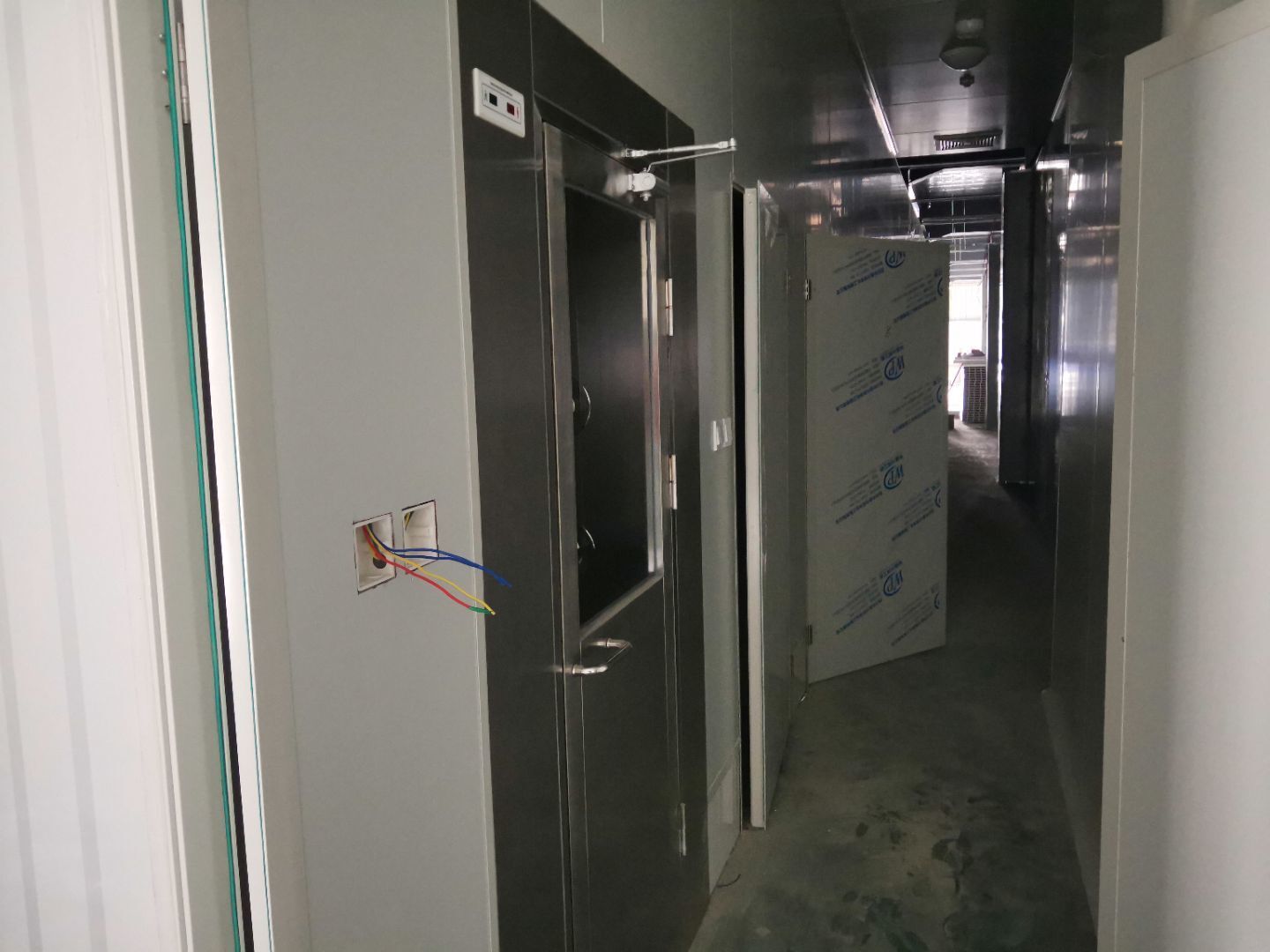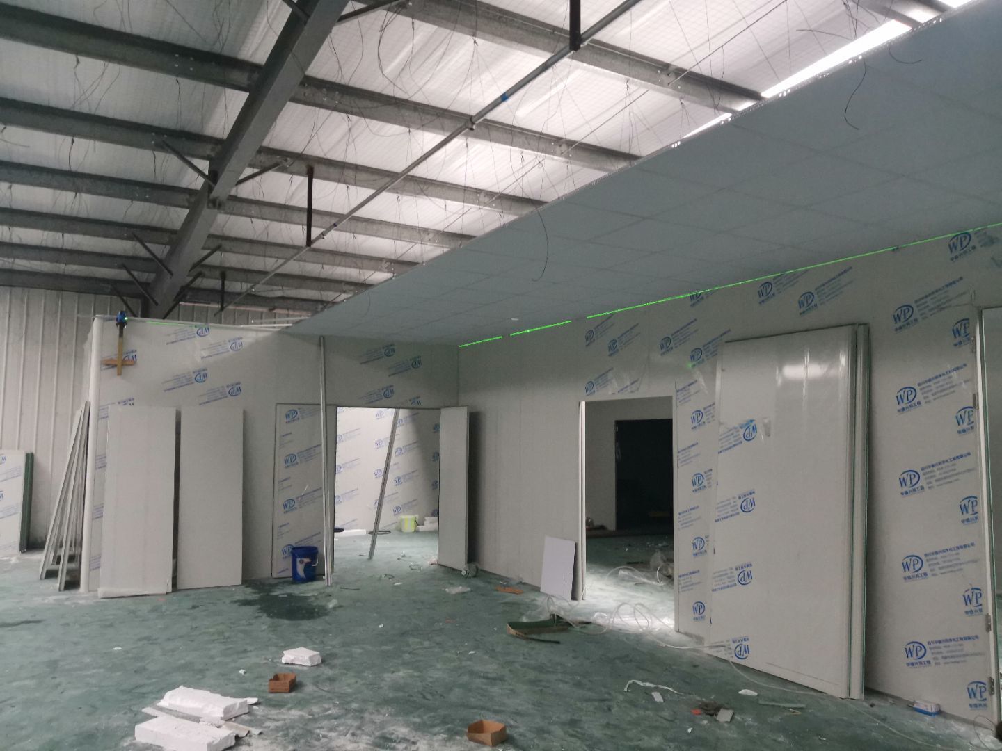 1,風(fēng)淋室,洗手槽進(jìn)場(chǎng)安裝完成 2,二樓彩鋼收尾完成95%, 3,二樓彩鋼門預(yù)制安裝完95%, 4,三防板二樓完成95%,, 5,二樓水電完成50% 6,一樓墻板完成40%,剩余等待設(shè)備進(jìn)場(chǎng)后安裝。