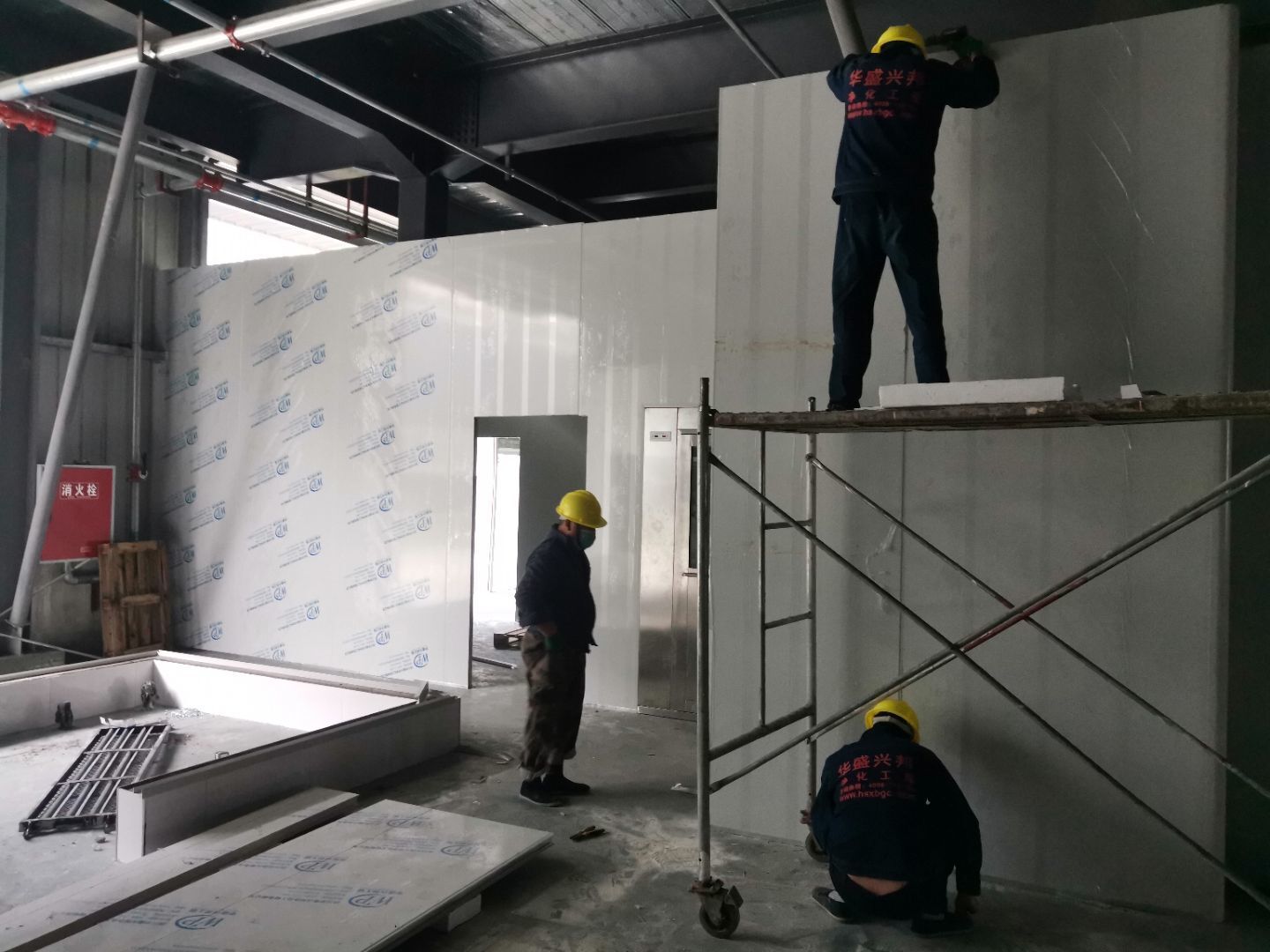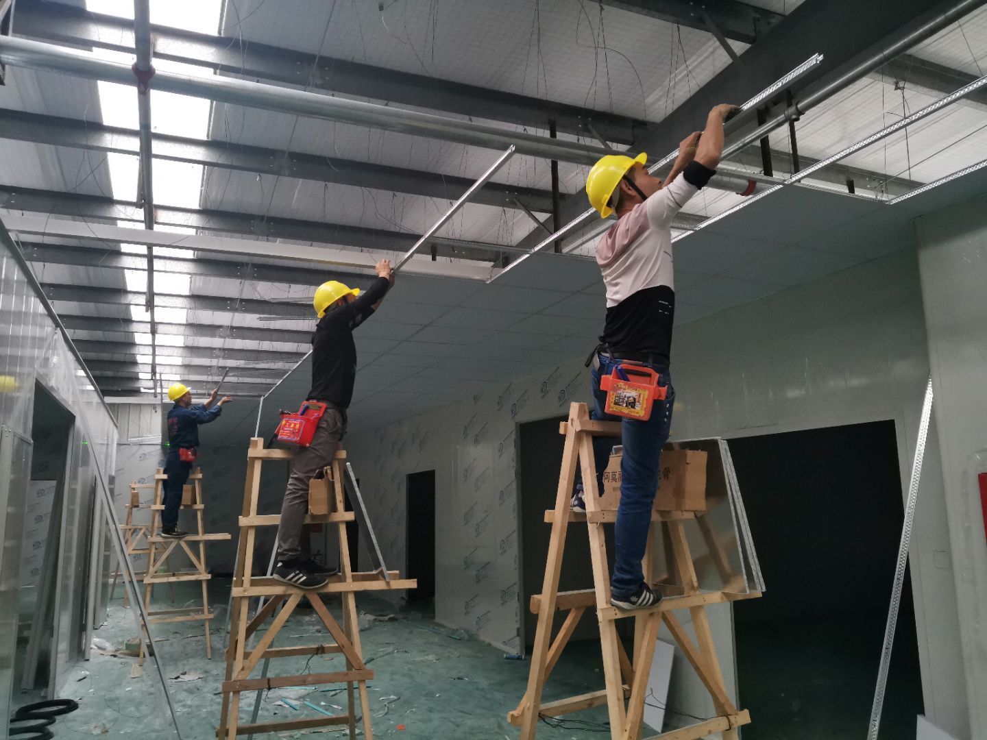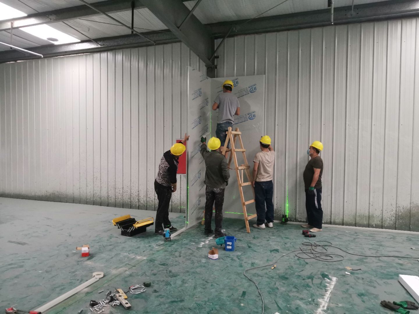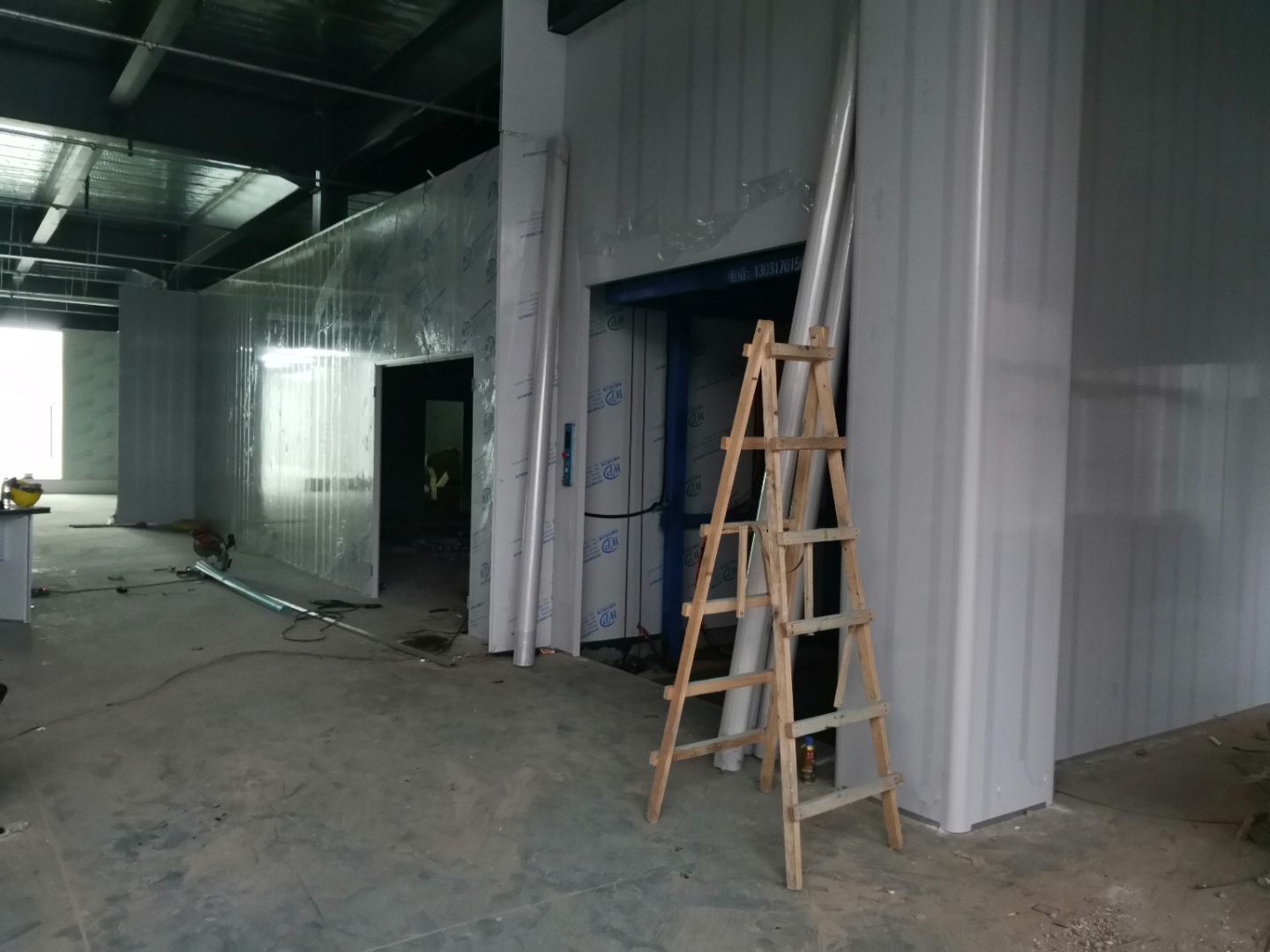 1,風(fēng)淋室,洗手槽進(jìn)場(chǎng)安裝完成 2,二樓彩鋼收尾完成95%, 3,二樓彩鋼門預(yù)制安裝完95%, 4,三防板二樓完成95%,, 5,二樓水電完成50% 6,一樓墻板完成40%,剩余等待設(shè)備進(jìn)場(chǎng)后安裝。