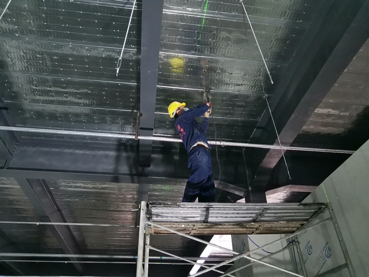 1,衛(wèi)生間管路預(yù)埋完成50%, 2,二樓彩鋼收尾完成90%, 3,二樓彩鋼門預(yù)制安裝完90%, 4,三防板吊頂進(jìn)場(chǎng),二樓完成30%, 5,水電班組進(jìn)場(chǎng)施工,開底盒。