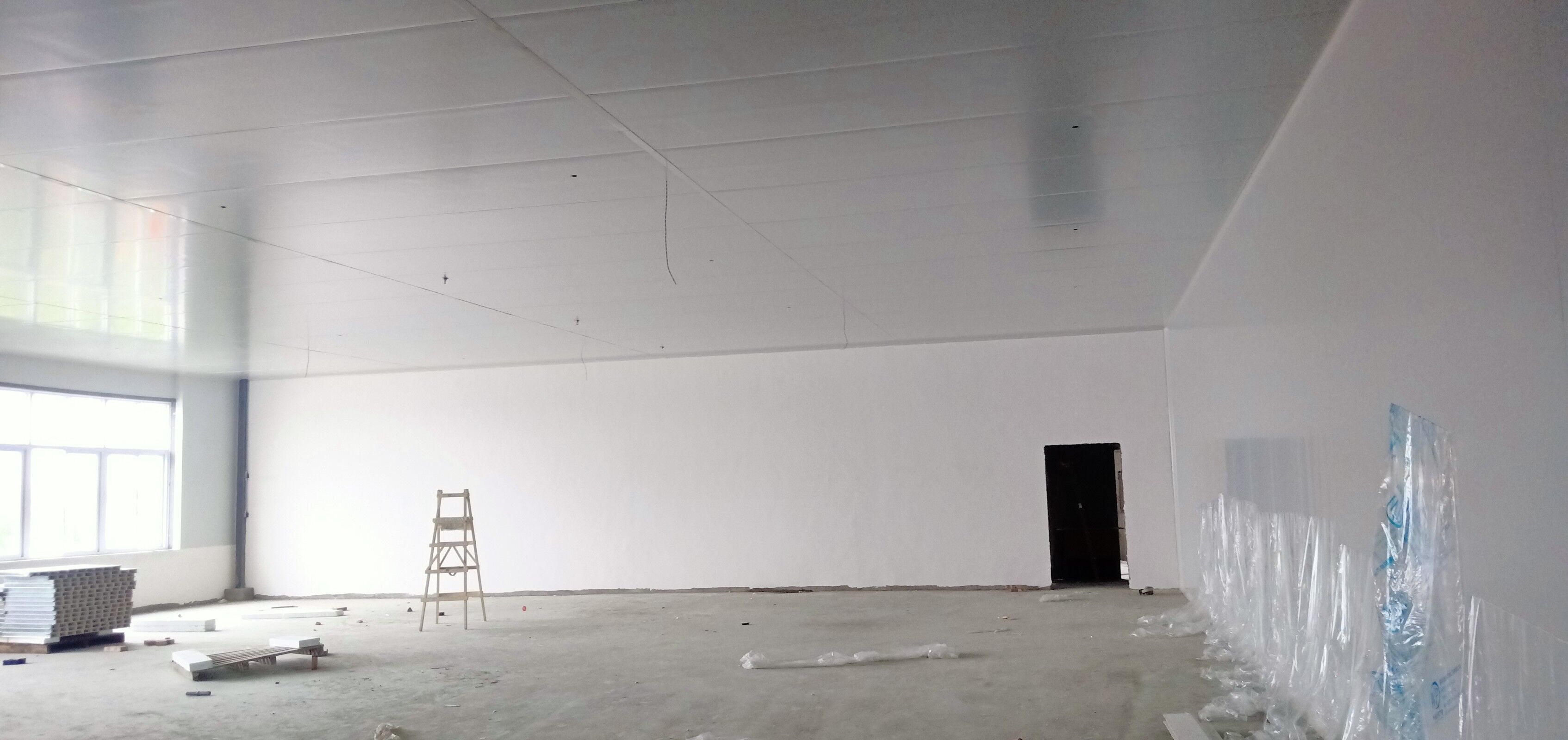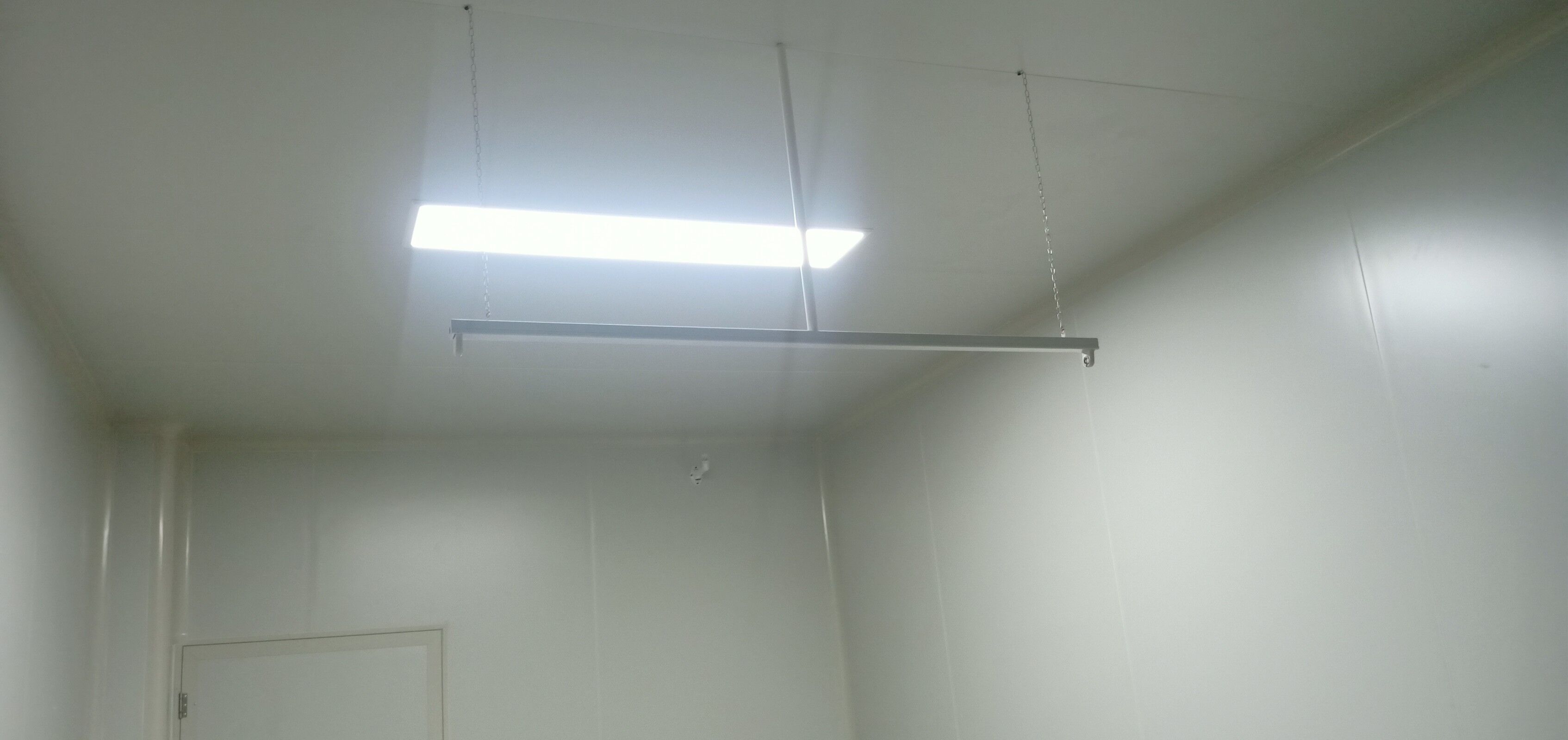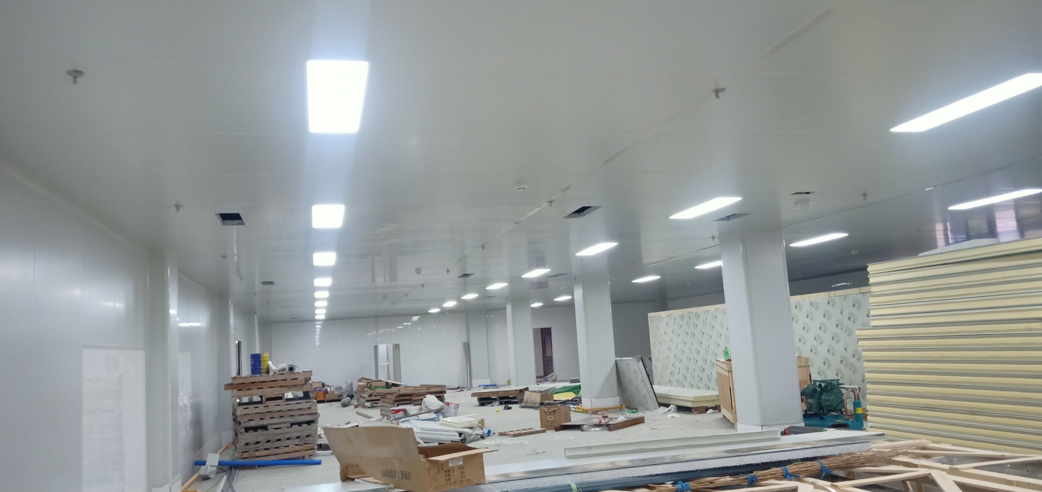 凈化車間墻面施工完成,吊頂燈具施工完成