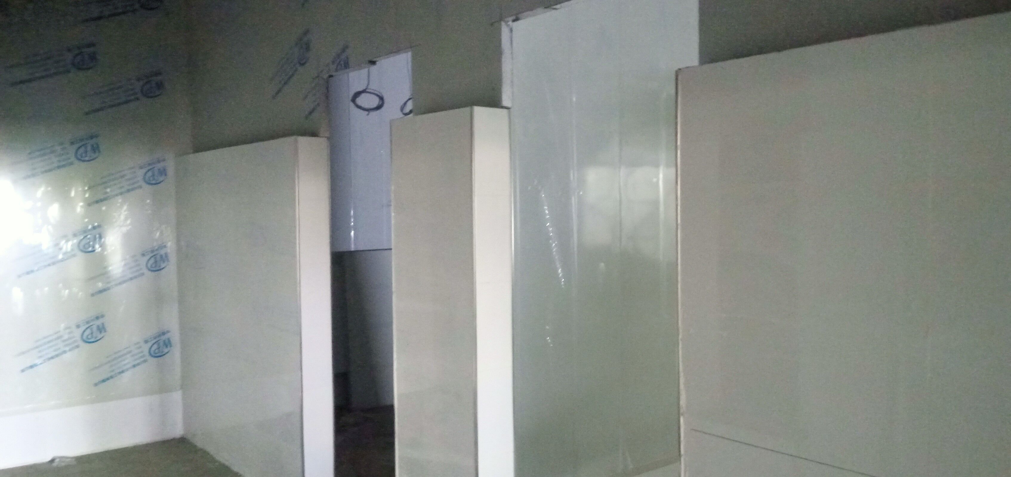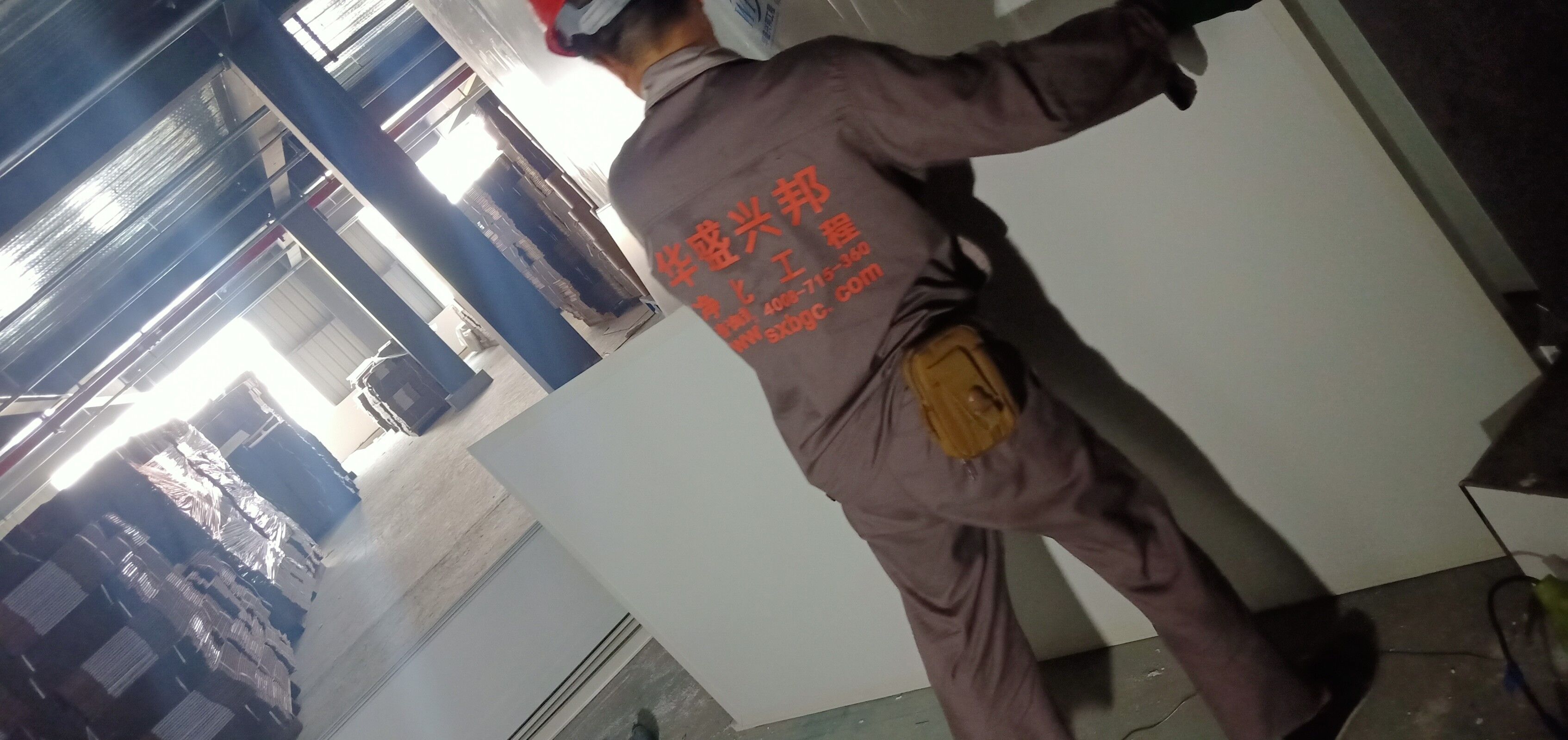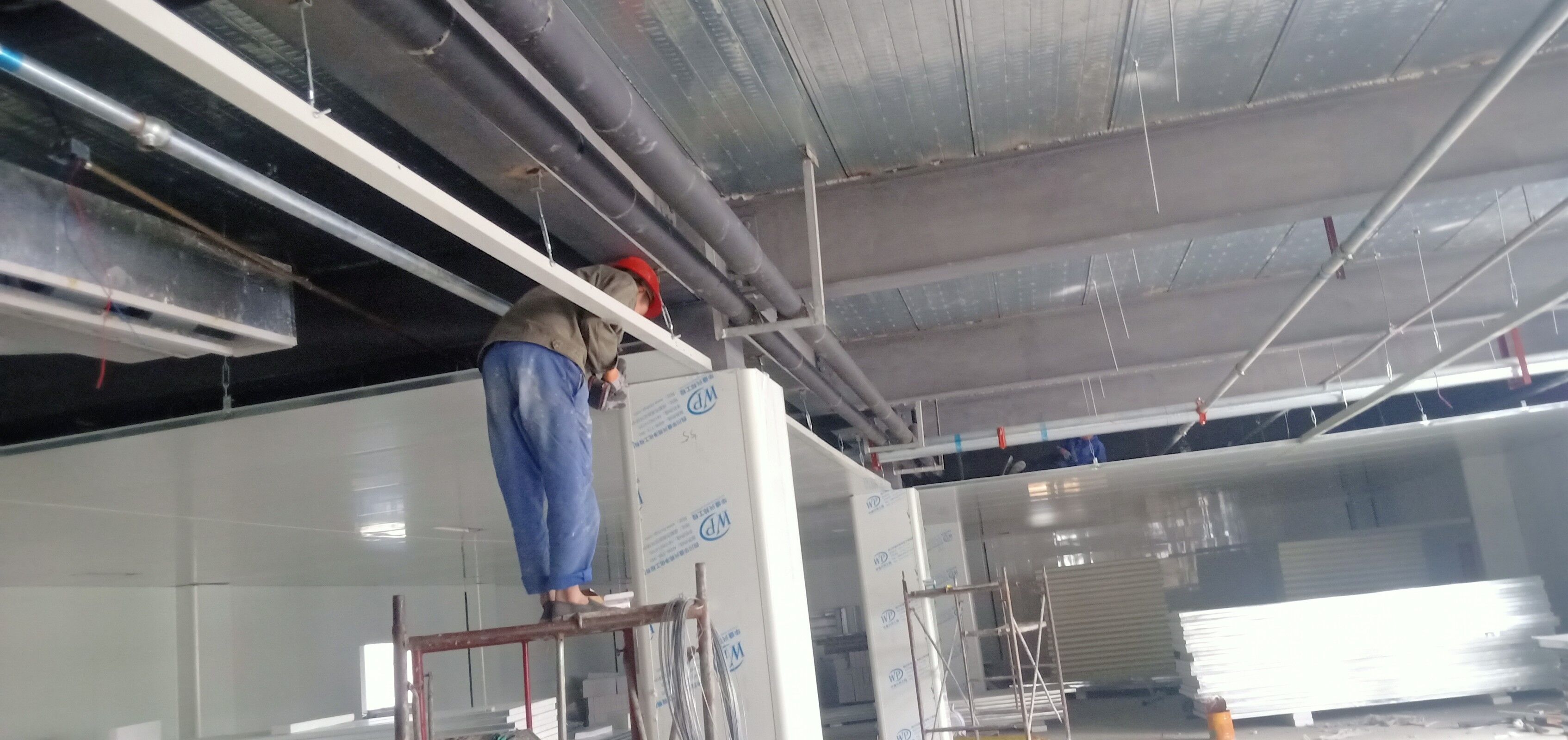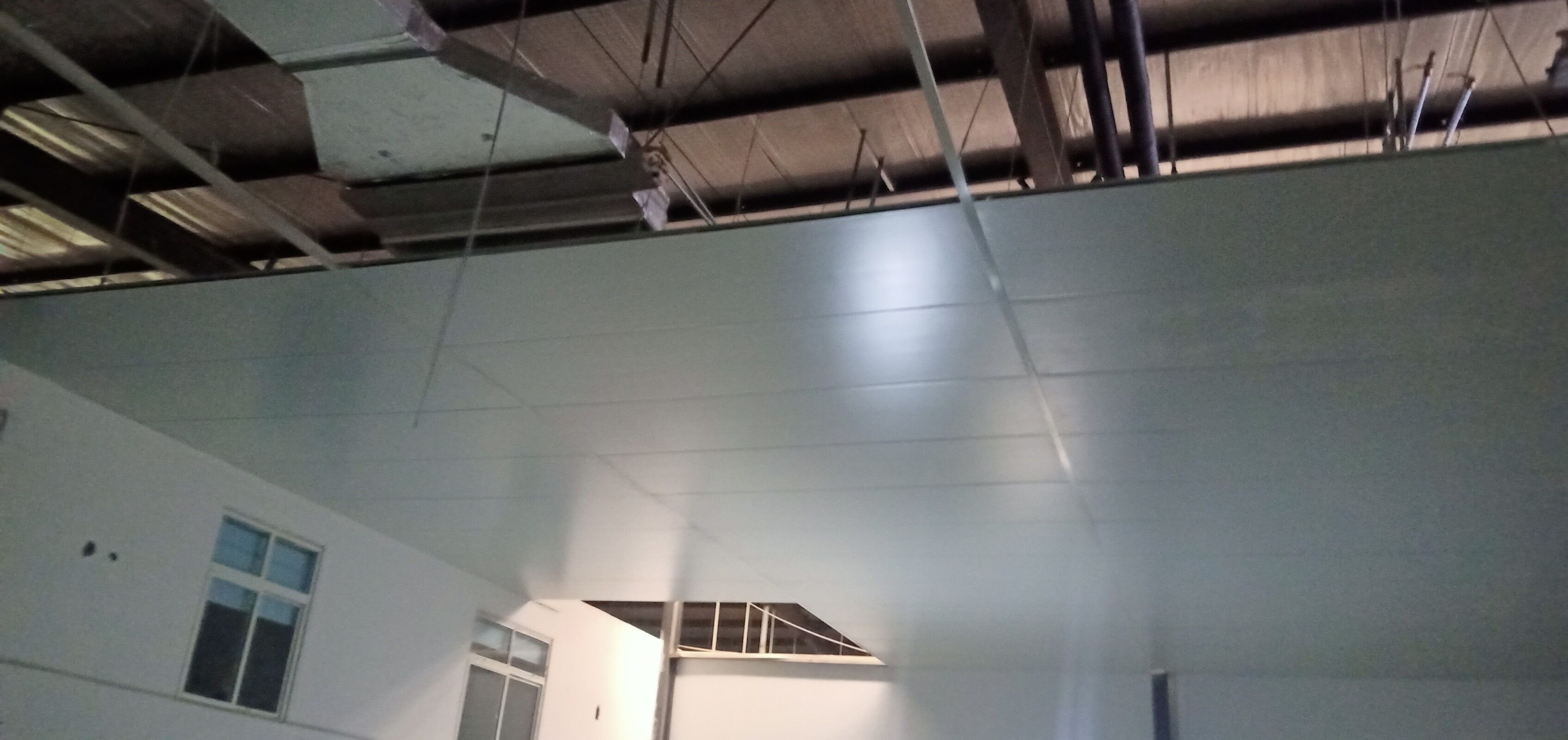 凈化車間墻面施工完成,吊頂燈具施工完成