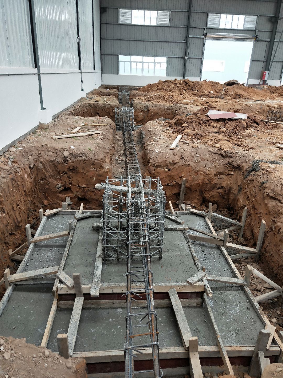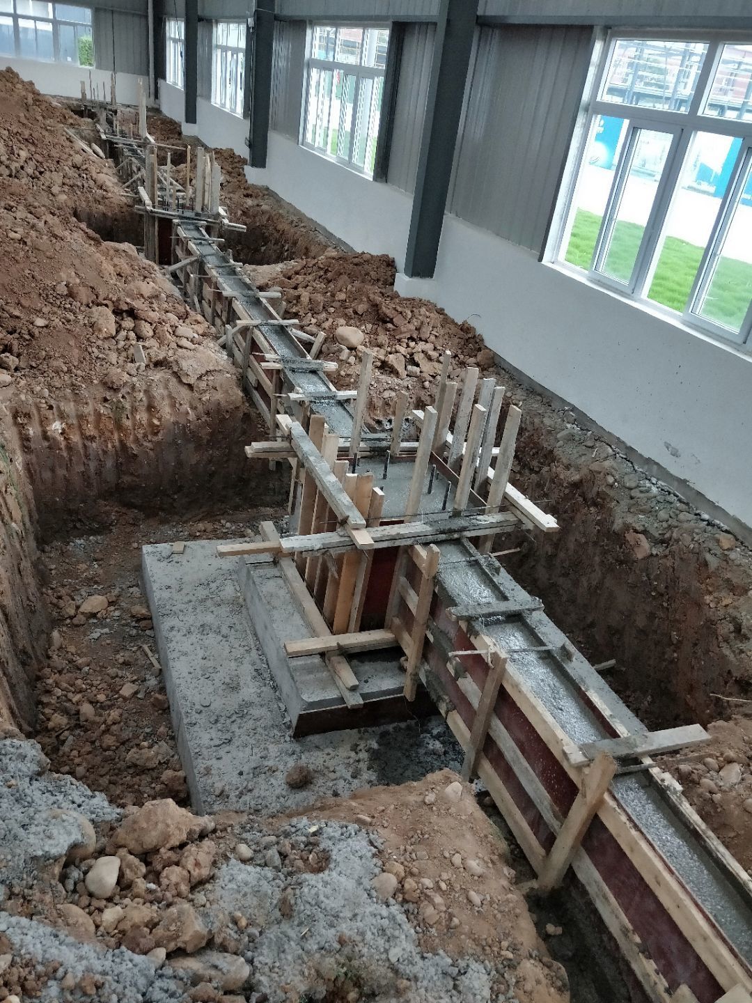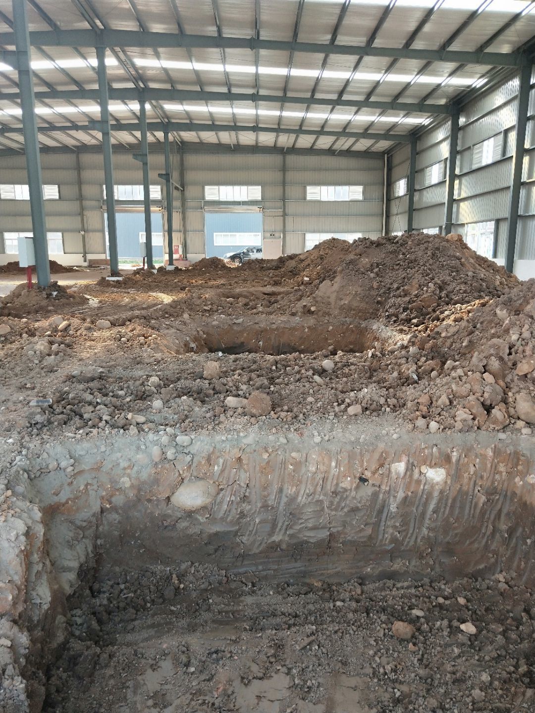 鋼筋材料到場(chǎng),澆筑混凝土墊層