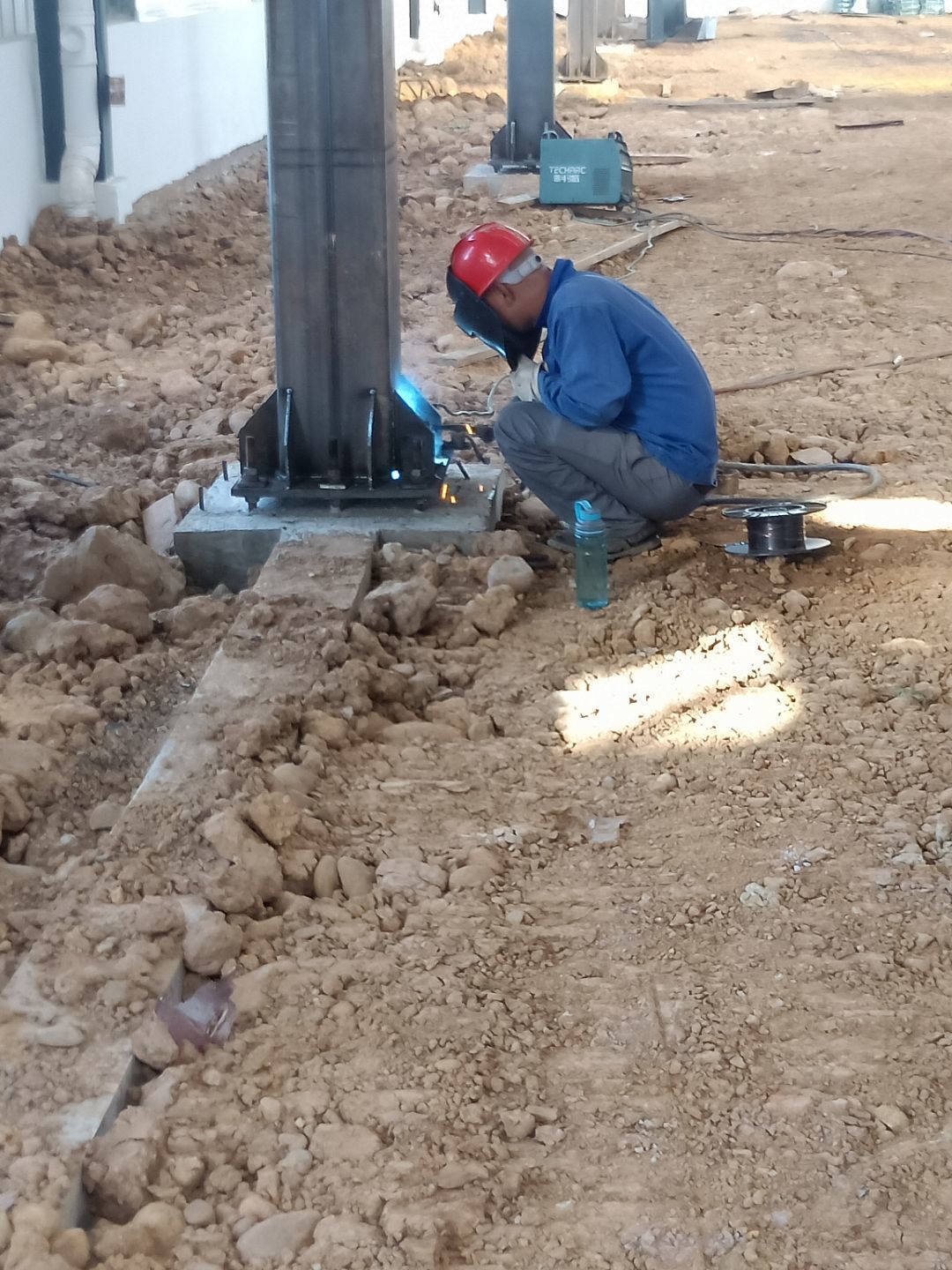 1安裝鋼構(gòu)件 2焊接加固柱腳