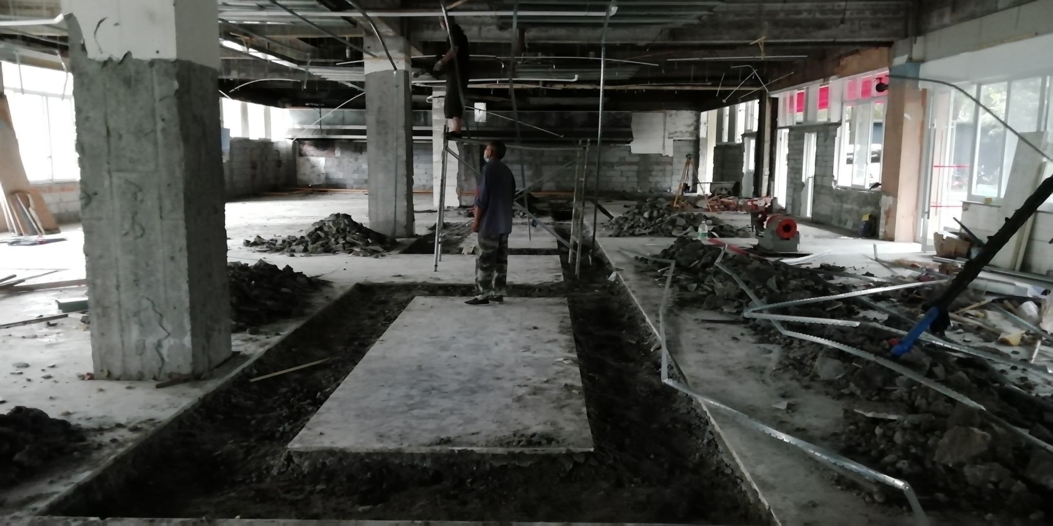 車間排水溝、擋水墻施工,車間地面鋪磚