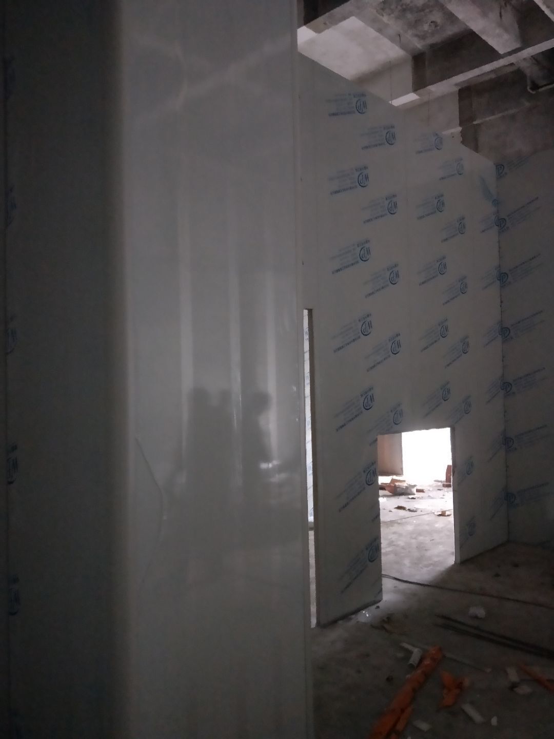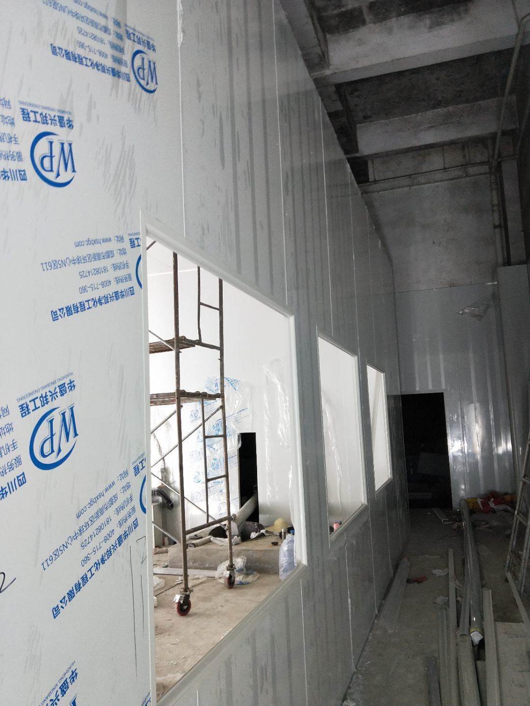 圓弧完成20%,墻體打膠,傳遞窗開洞,門施工,風淋室安裝