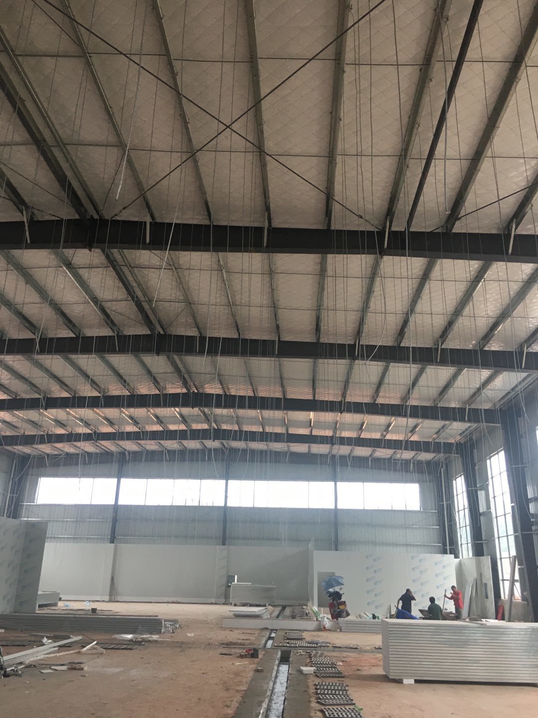 彩鋼頂板除預留外完成100%;門、窗、各完成100%;地坪固化處理完成90%圓狐及底座同時完成75%。水,電、完成90%。