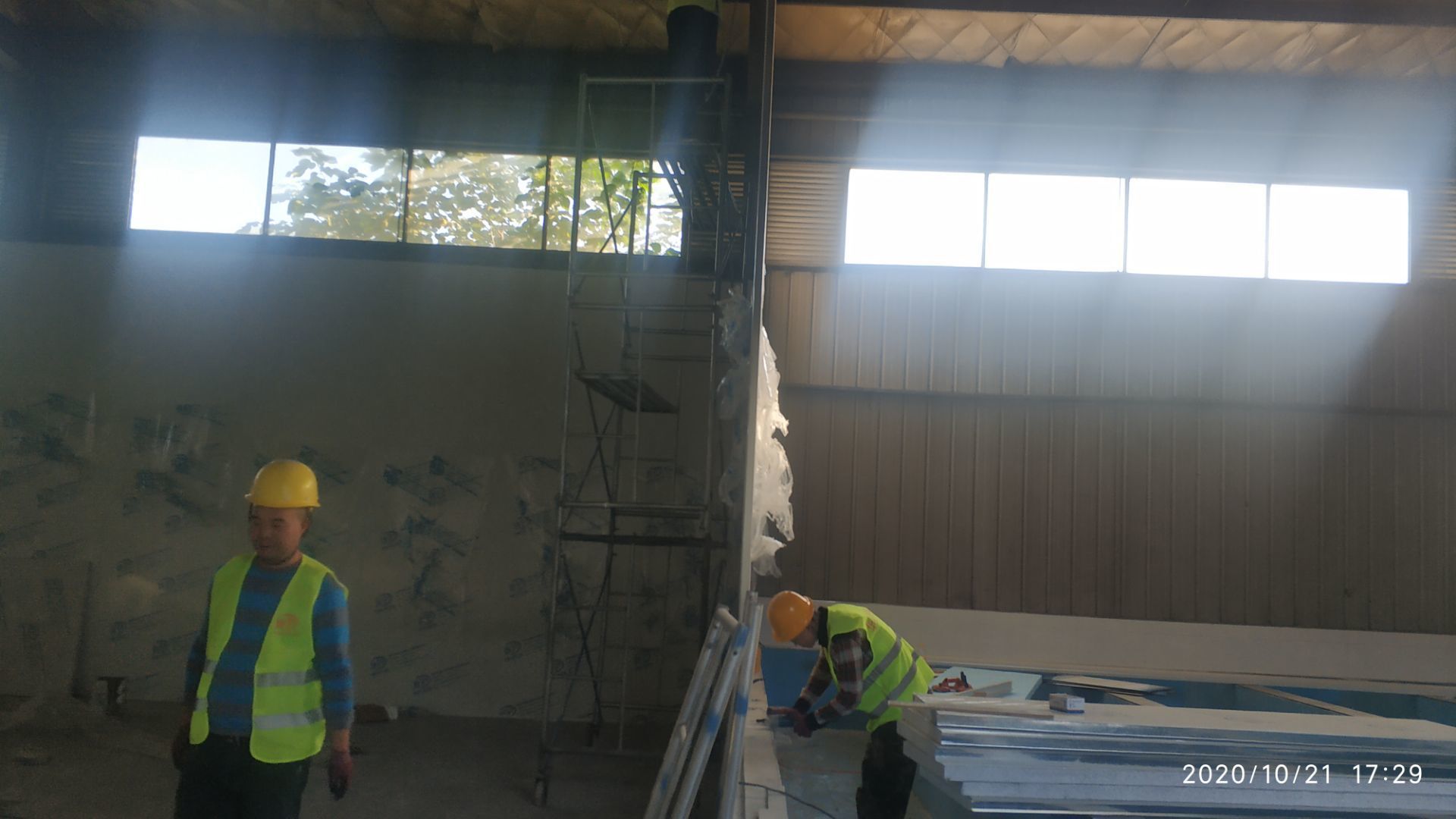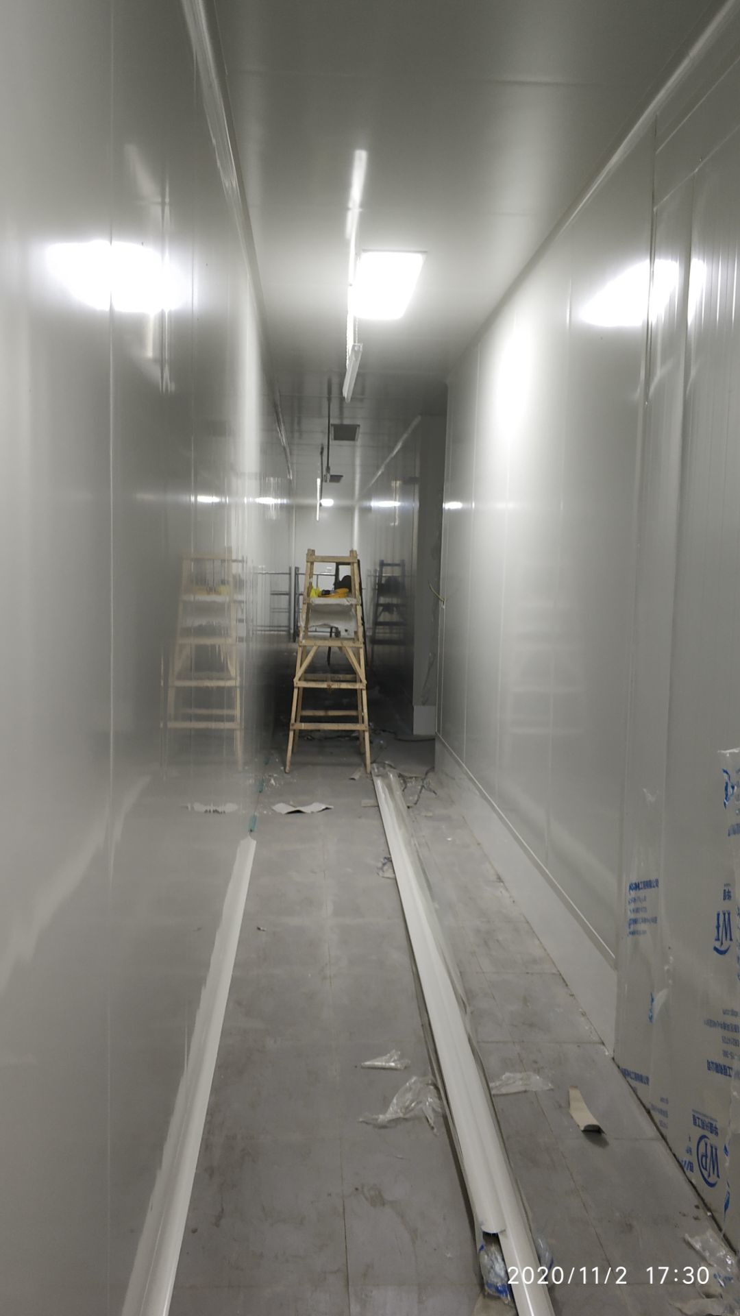 1.地面瓷磚鋪貼完成百分之八十。 2.凍庫墻板安裝施工完成百分之五。