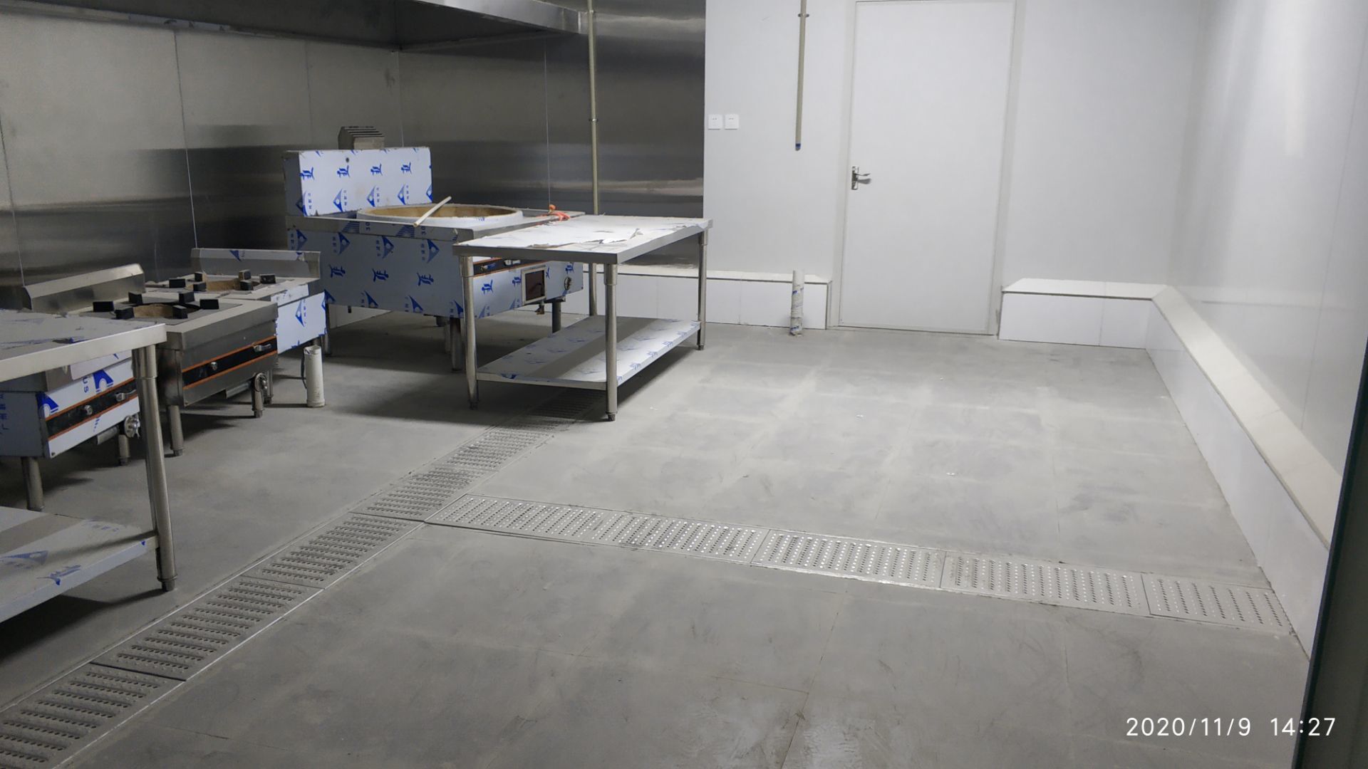 1.凍庫收邊收口完成百分之七十;2、凍庫門安裝完成百分之六十五; 3、生產車間地面鋪裝完成百分之七十; 4、生產車間排水溝貼磚完成。