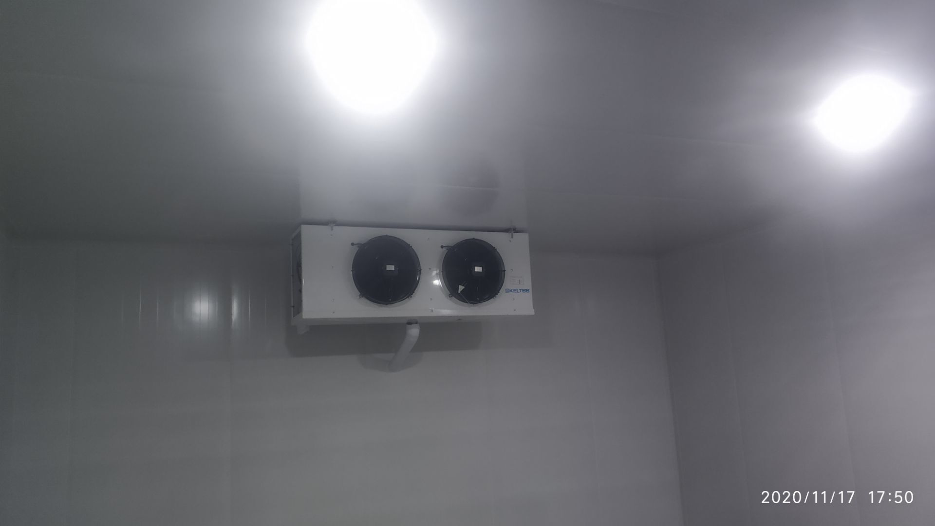1.地面打磨完成分揀區域和后勤庫房。2.彩鋼組收邊收口,安裝門完成百分之八十。3.照明插座布線安裝完成百分之八十五。 4.凍庫內機組安裝完成。 5.卷簾門安裝完成。