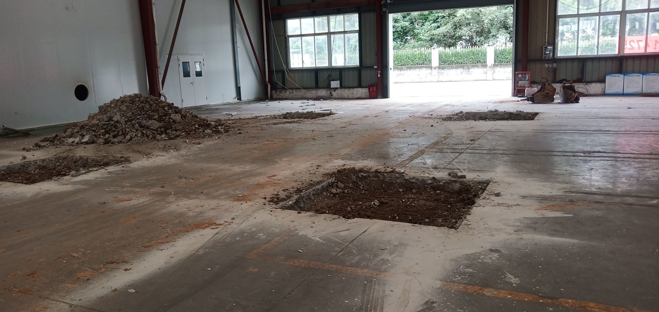 地面找平打點(diǎn),辦公區(qū)槽鋼焊接,角鋼除銹刷防銹漆
