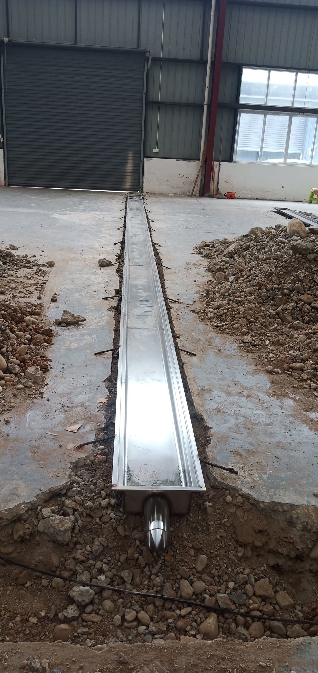 平臺(tái)基礎(chǔ)上安裝不銹鋼排水溝,鋼結(jié)構(gòu)柱腳板安裝,鋼梁、鋼柱加工,鋼梁、鋼柱制作完成60%