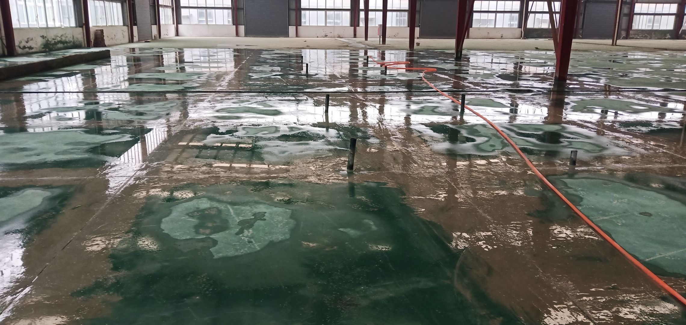 地坪收縮縫切割完成,不銹鋼排水溝清洗完成,地面養(yǎng)護(hù)