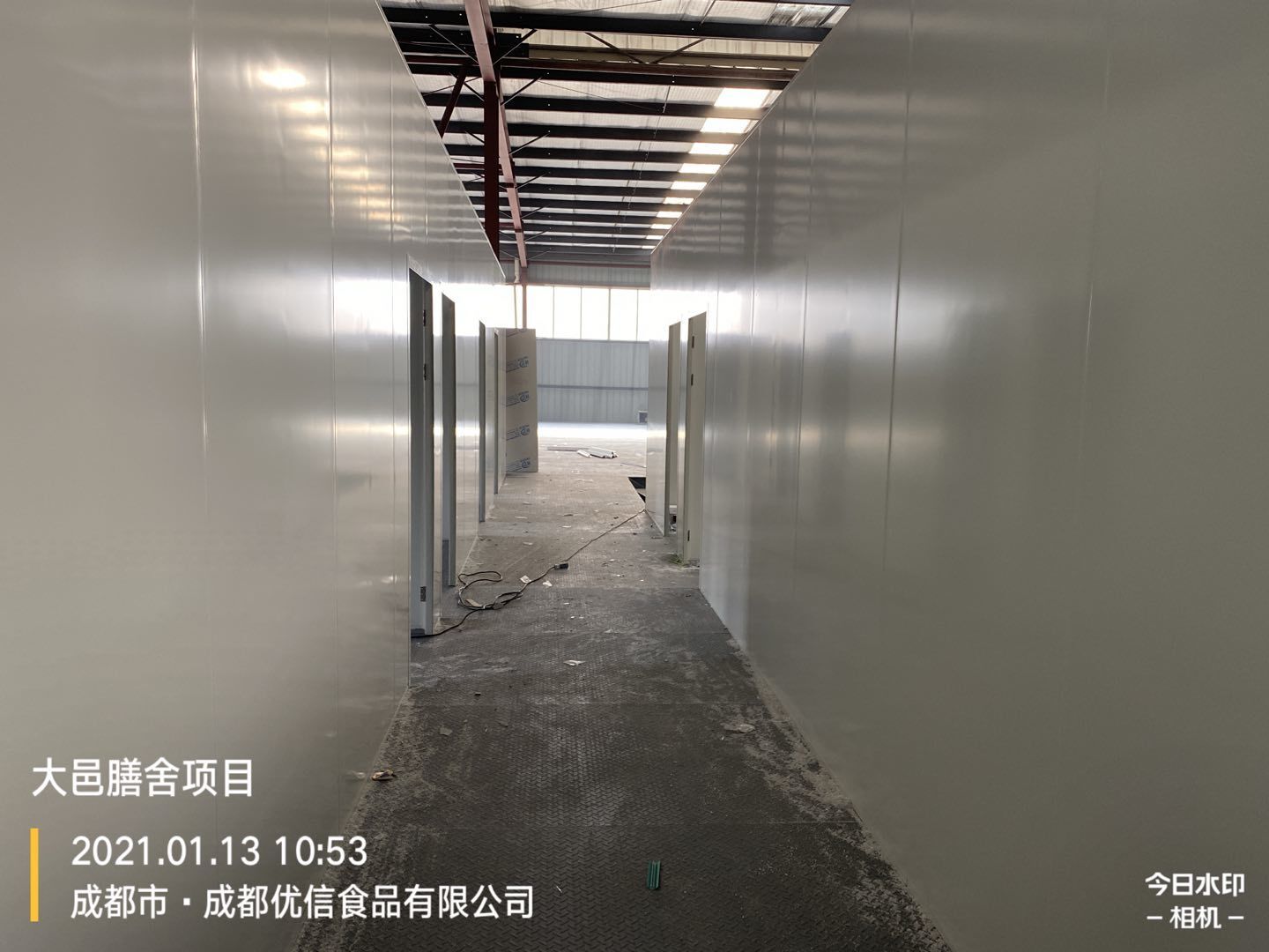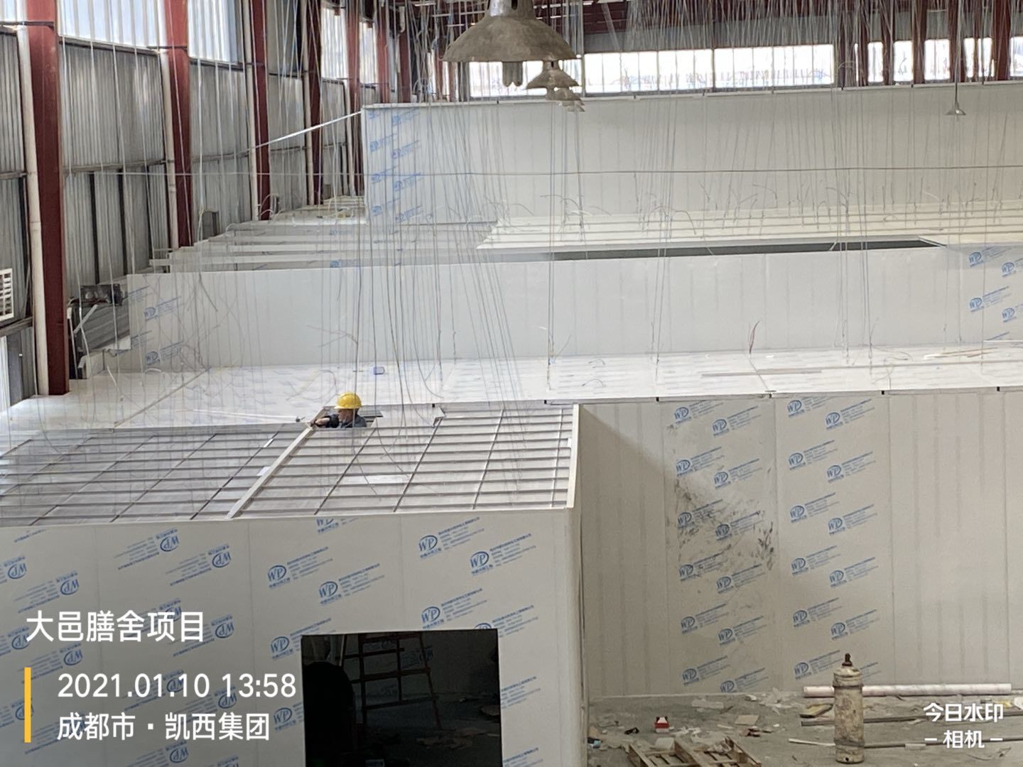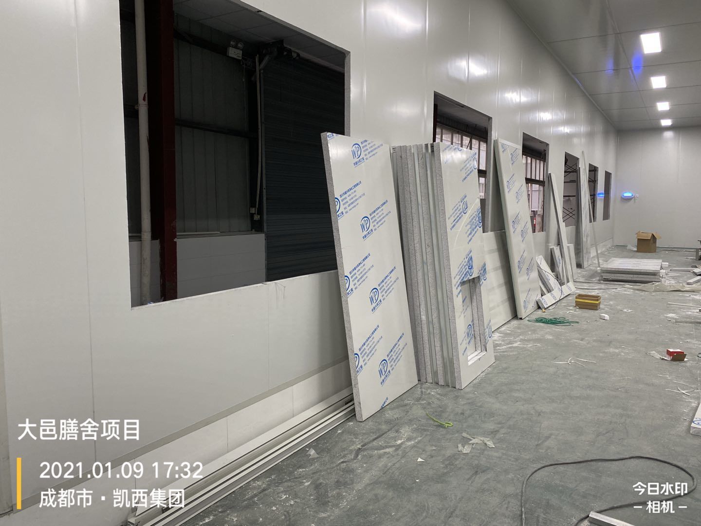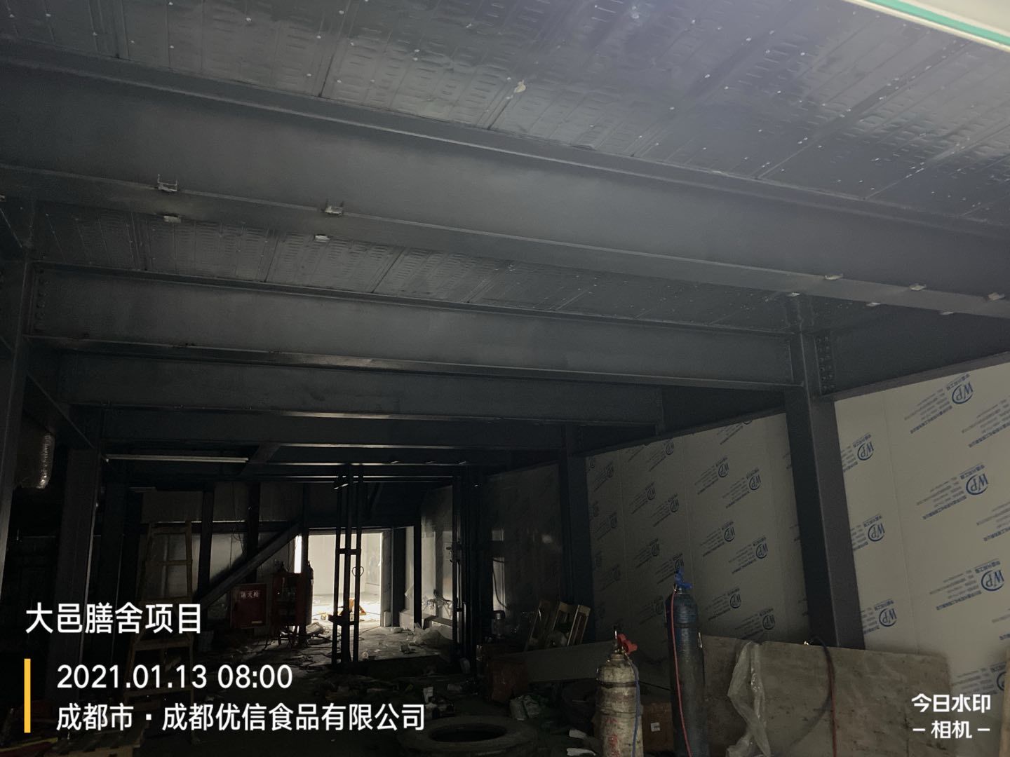 大邑膳舍食品項(xiàng)目:擋水墻貼磚完成90%,花紋鋼板、樓梯板到場(chǎng),樓梯踏步開(kāi)始焊接,彩鋼墻板立板完成5%。