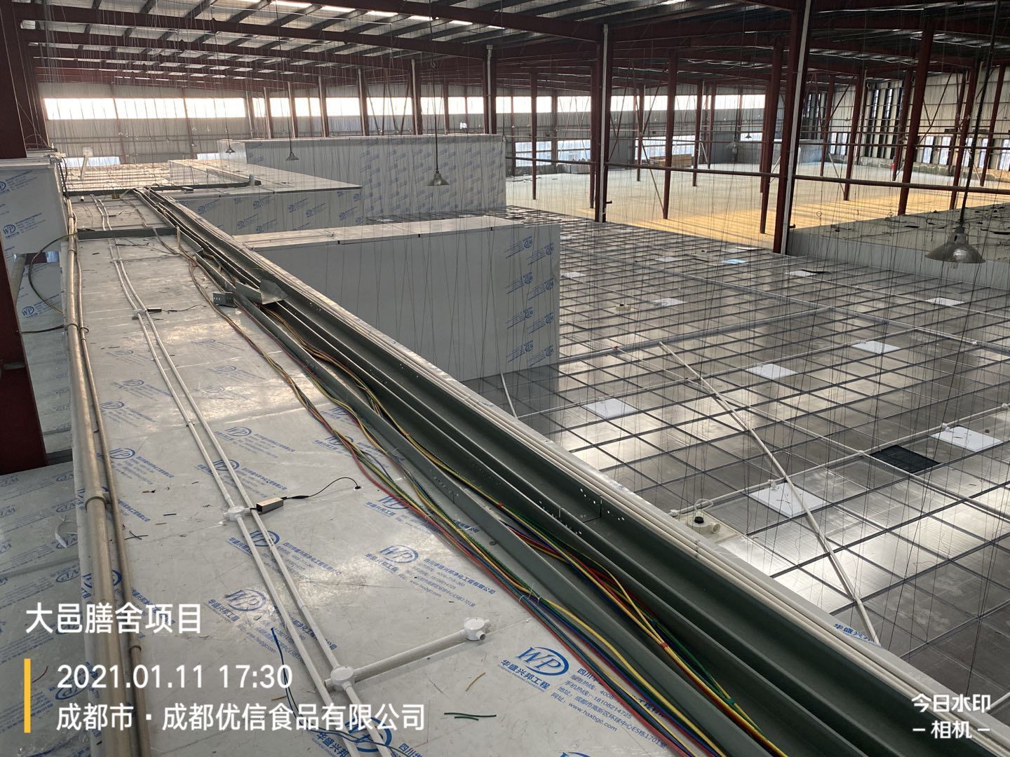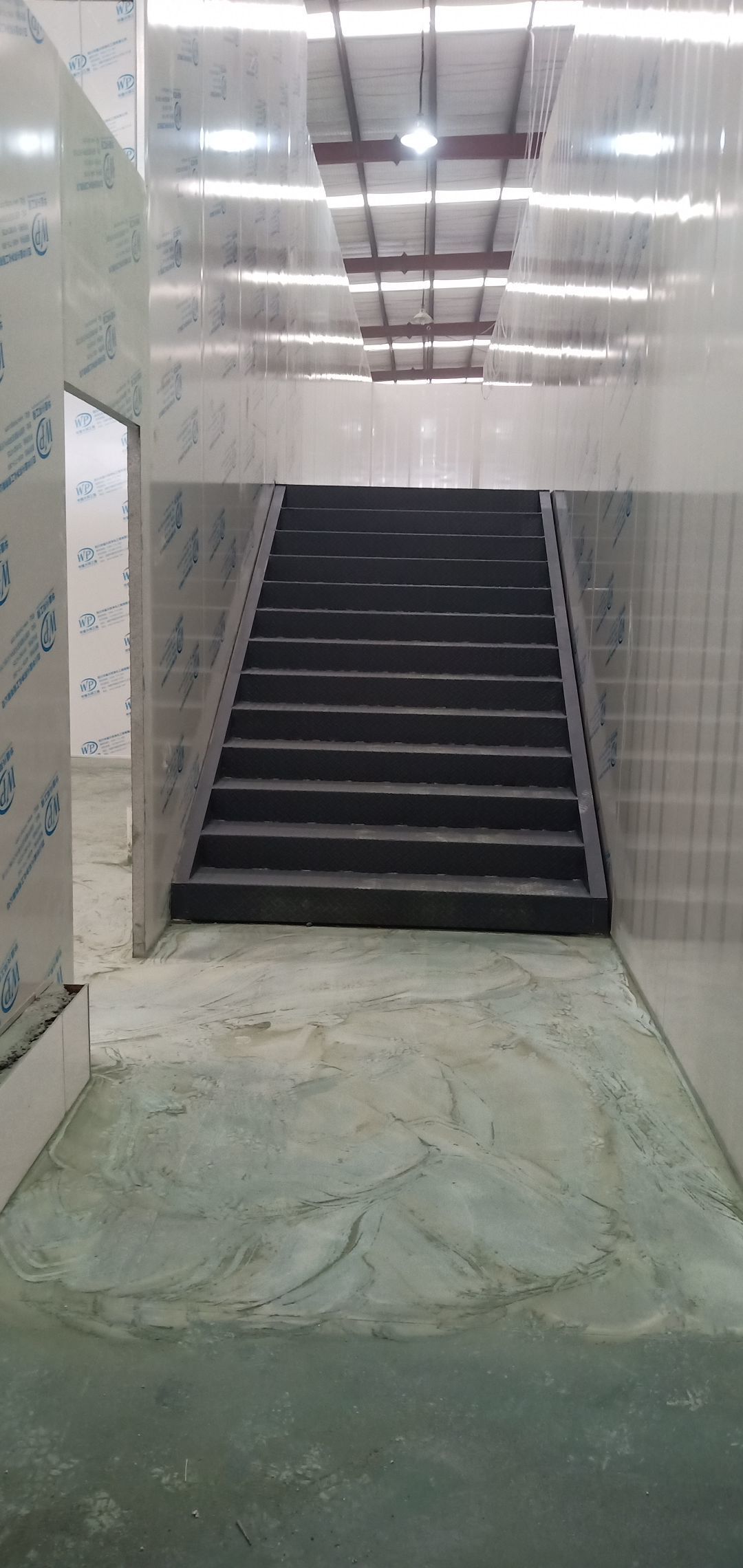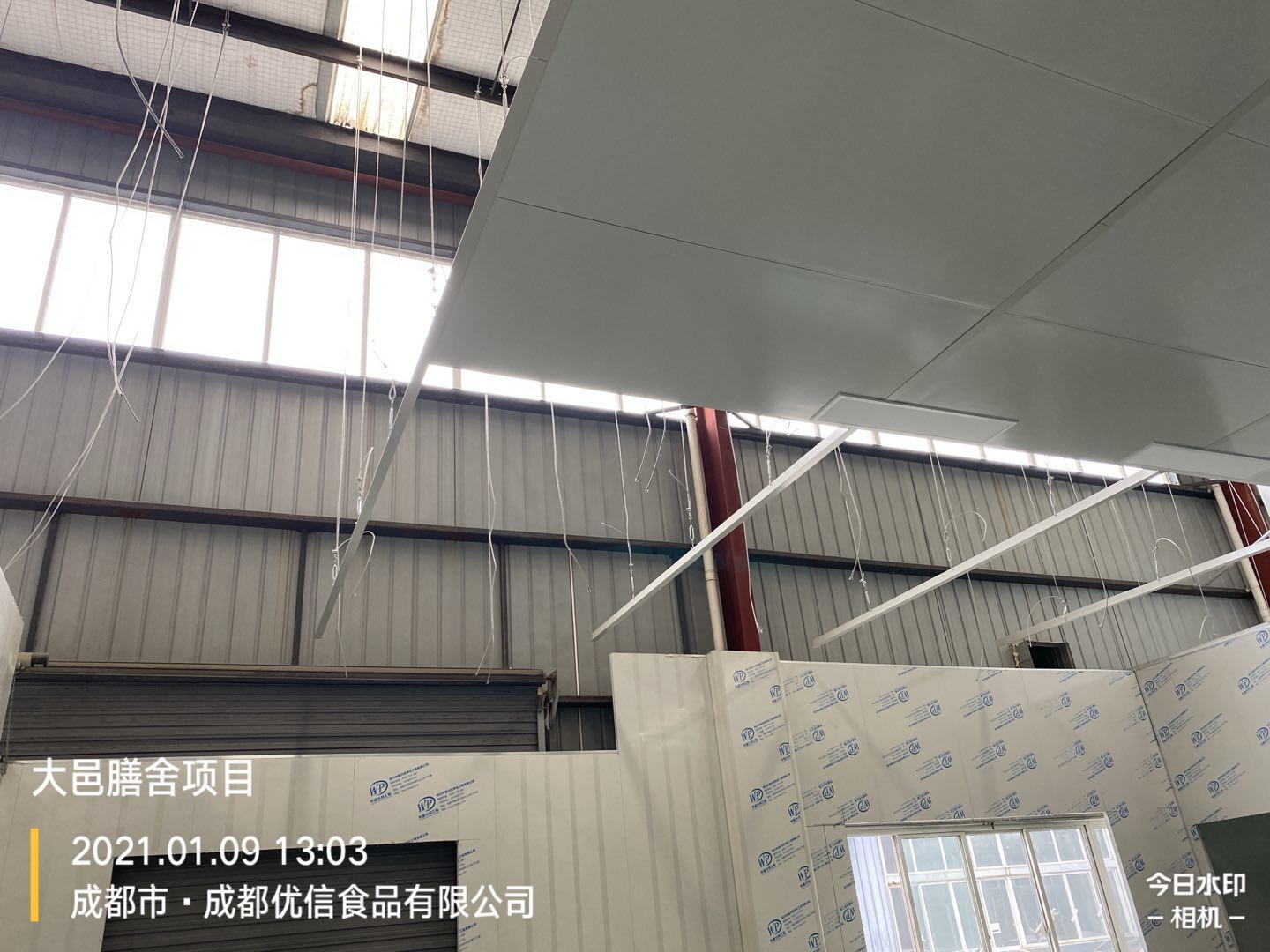 大邑膳舍食品項(xiàng)目:擋水墻貼磚完成90%,花紋鋼板、樓梯板到場(chǎng),樓梯踏步開(kāi)始焊接,彩鋼墻板立板完成5%。