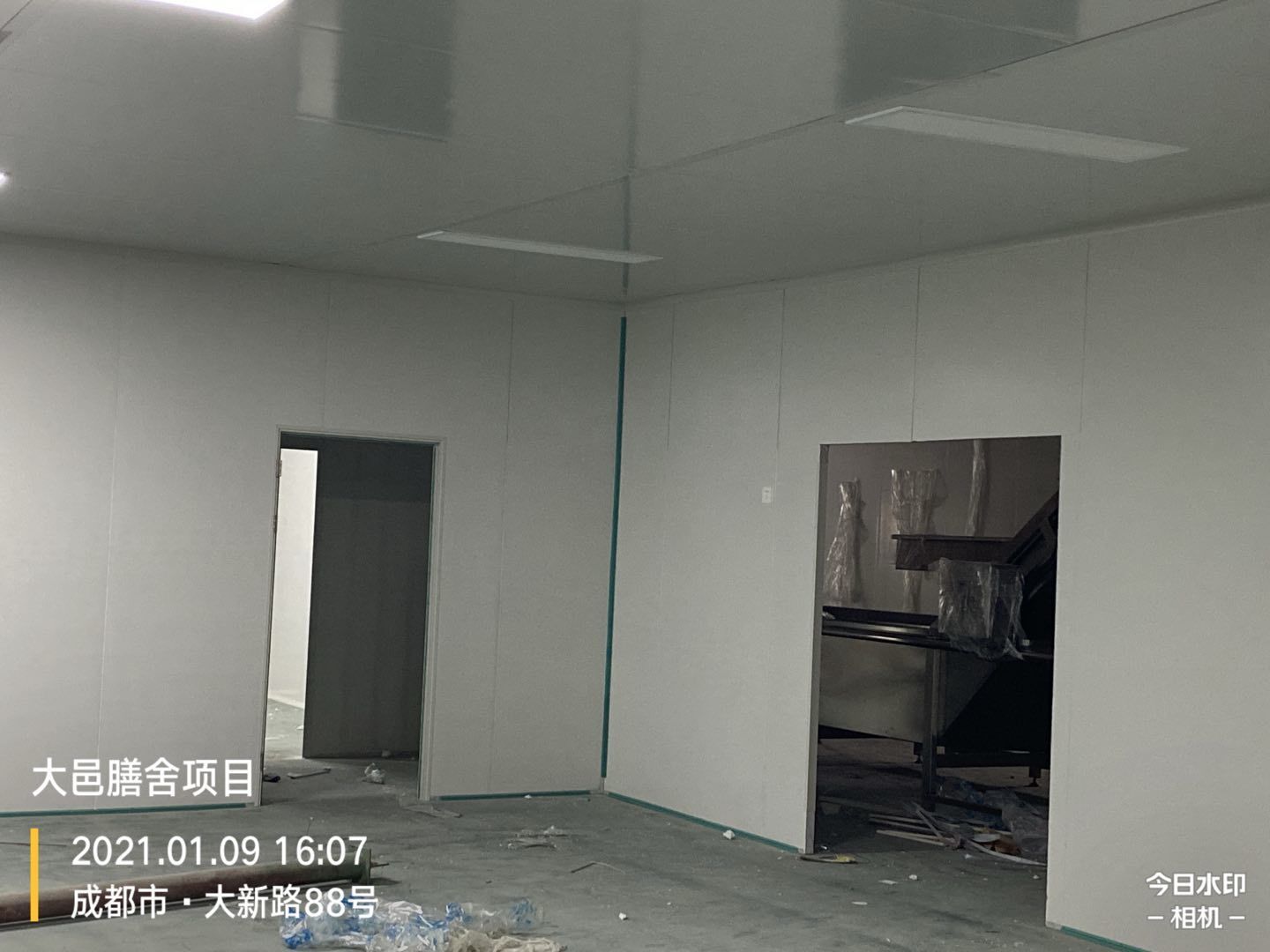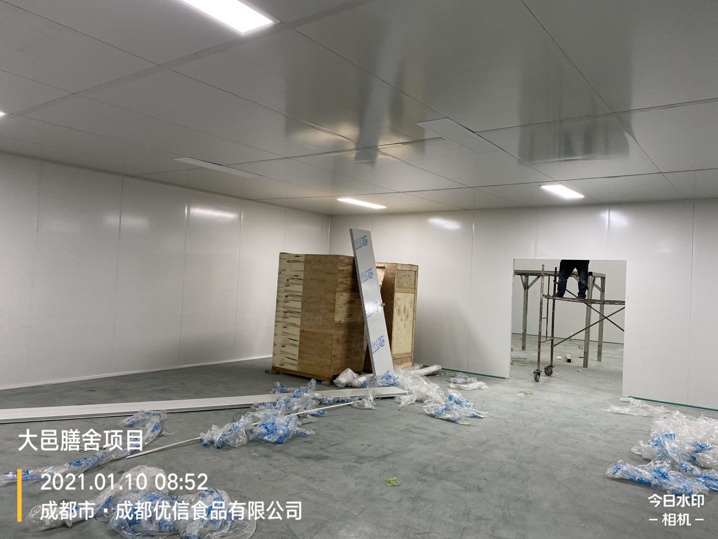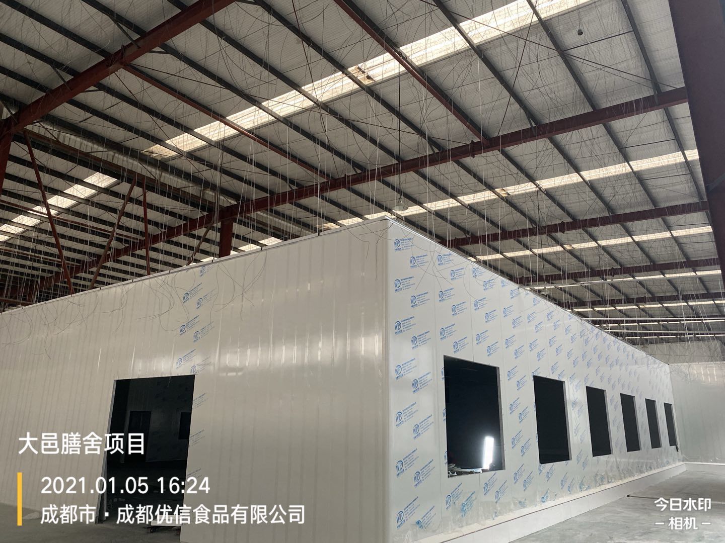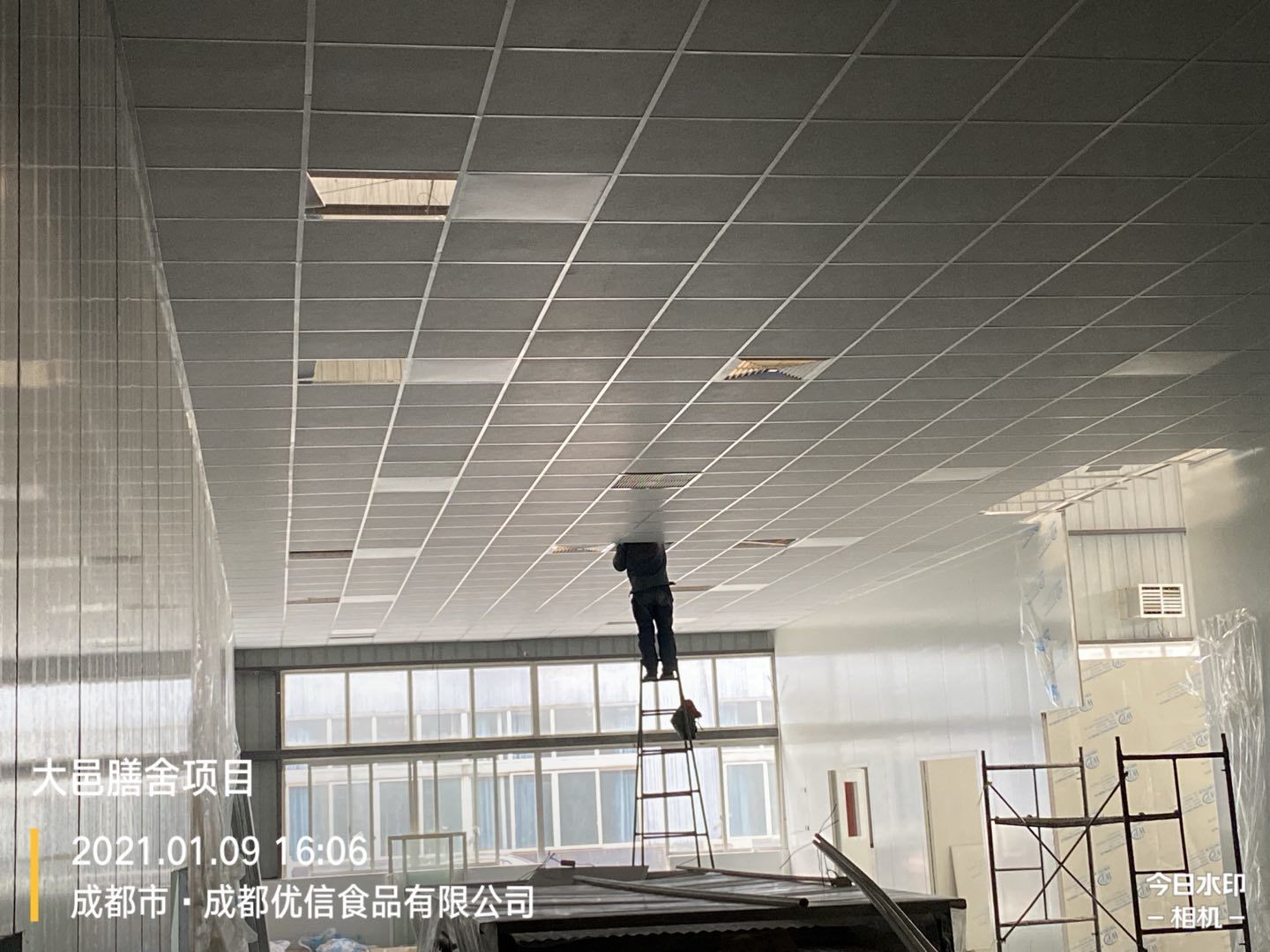 大邑膳舍食品項(xiàng)目:擋水墻貼磚完成90%,花紋鋼板、樓梯板到場(chǎng),樓梯踏步開(kāi)始焊接,彩鋼墻板立板完成5%。
