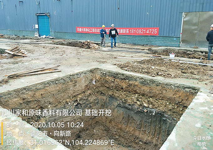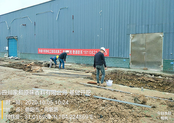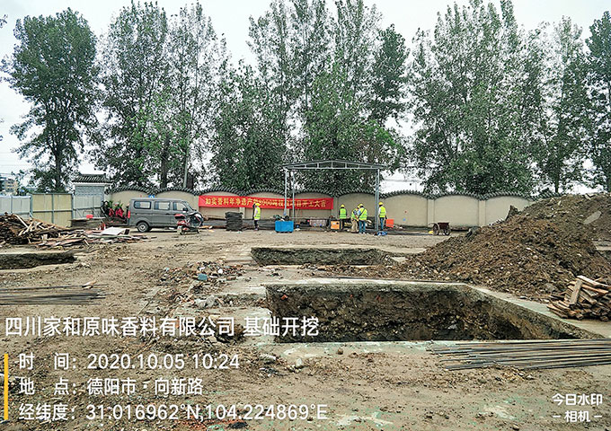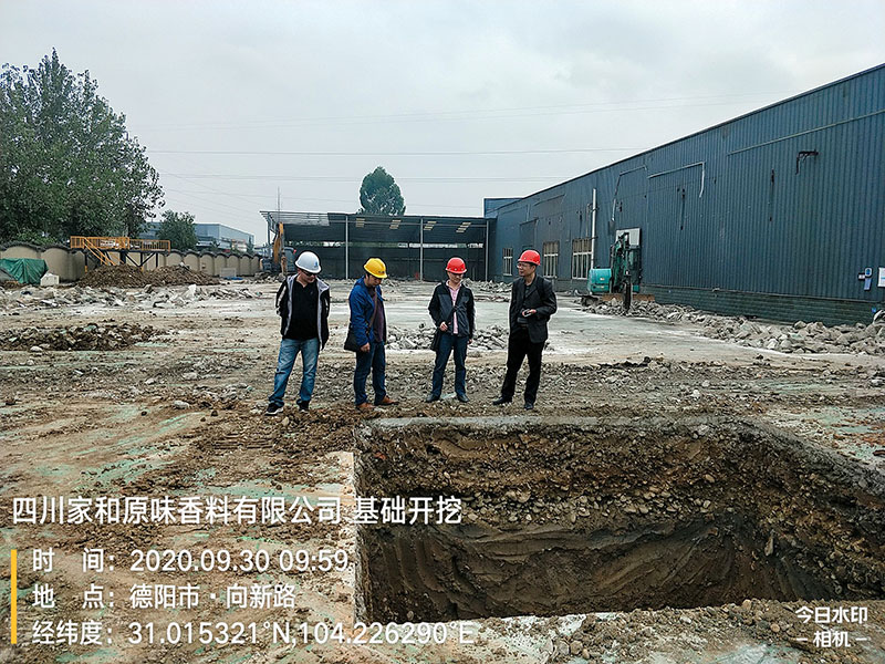四川家和原味香料有限公司土建廠房施工現場,今日工作,基礎開挖