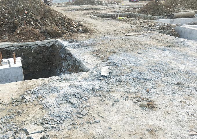 1.外墻工程完成90%;2.一樓固化完成40%;3.一樓基坑防水完成;4.電纜溝開挖破碎完成70%