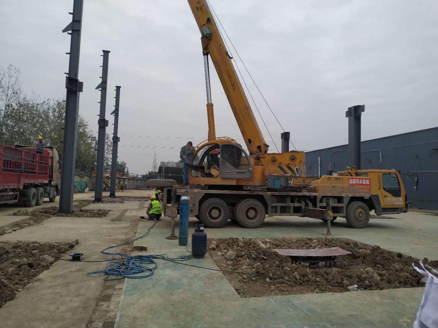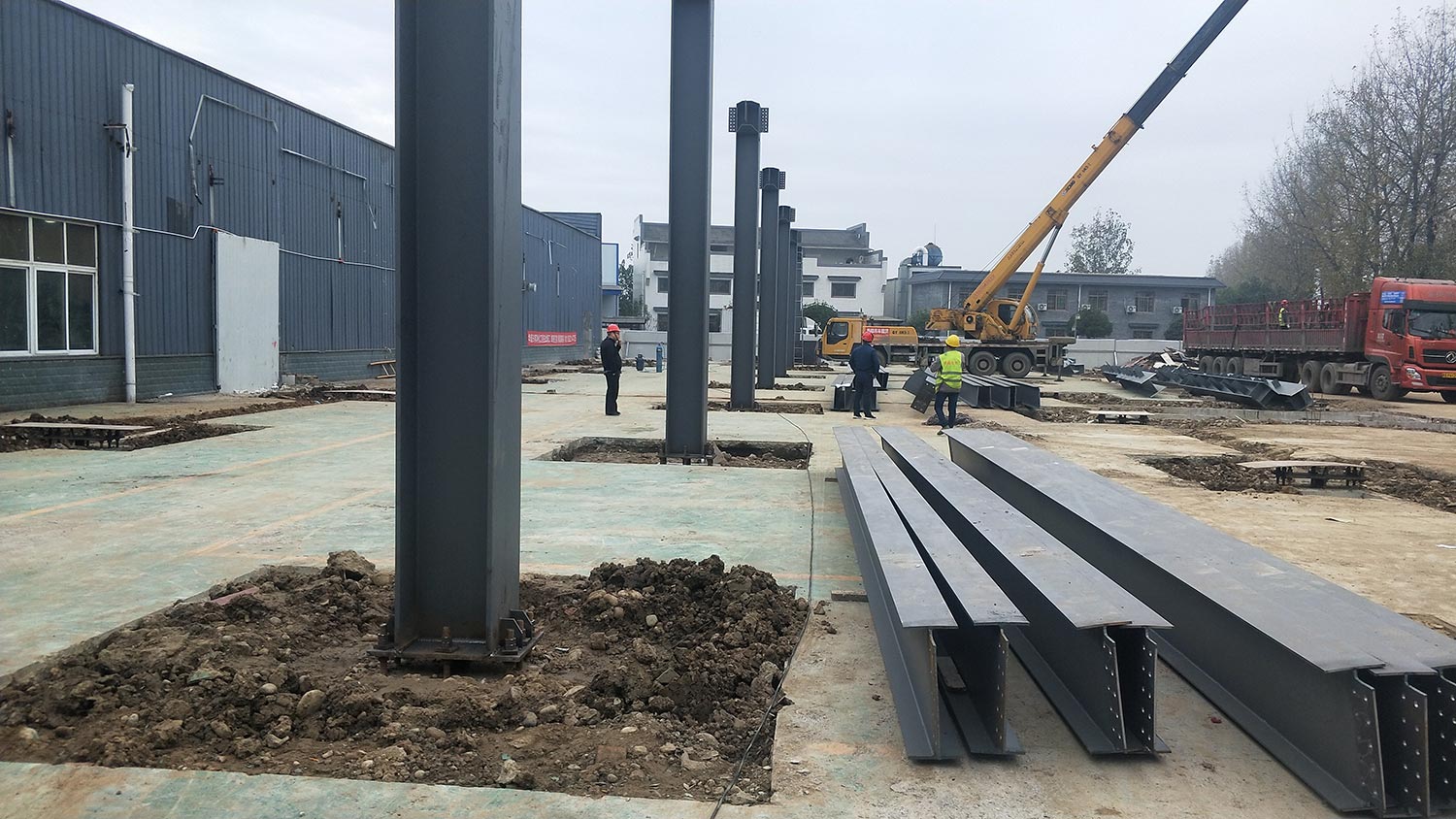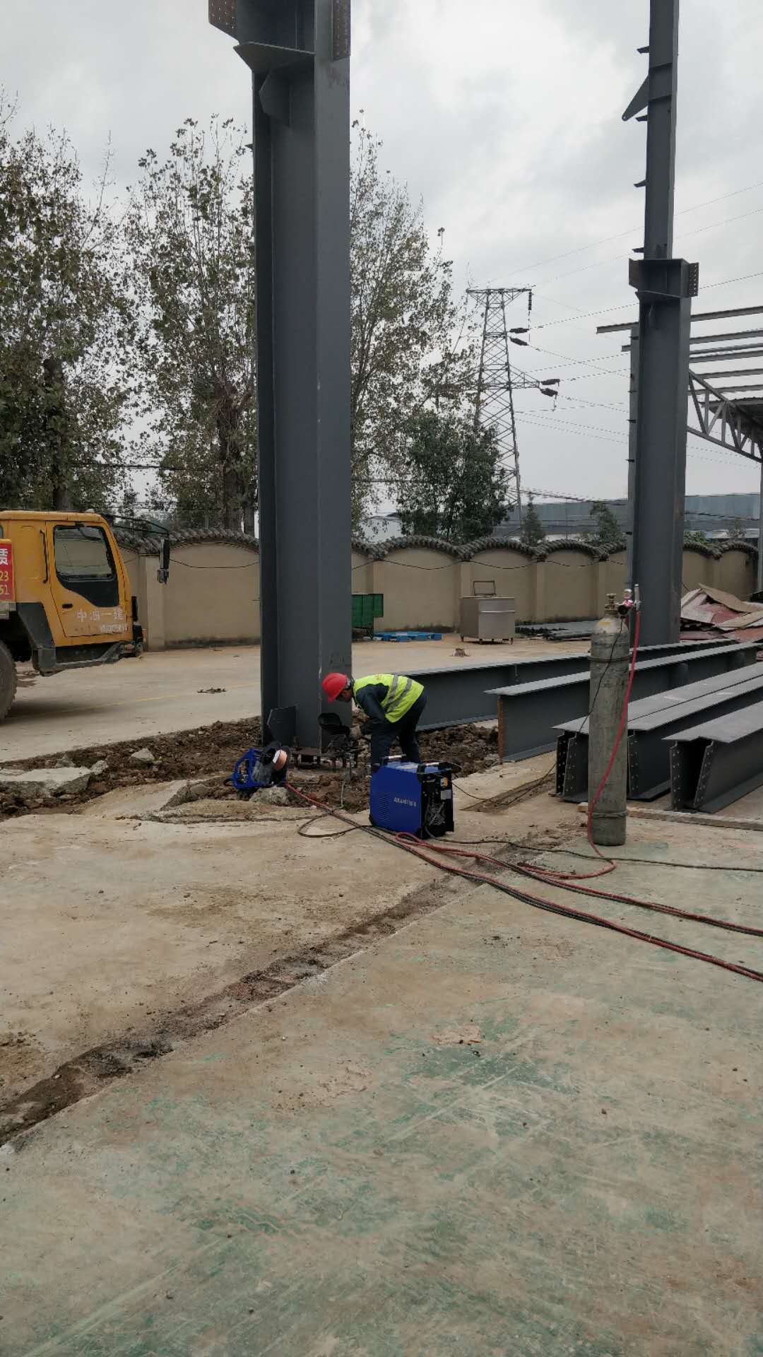 1.鋼構廠驗廠。2.鋼柱安裝完成10%。