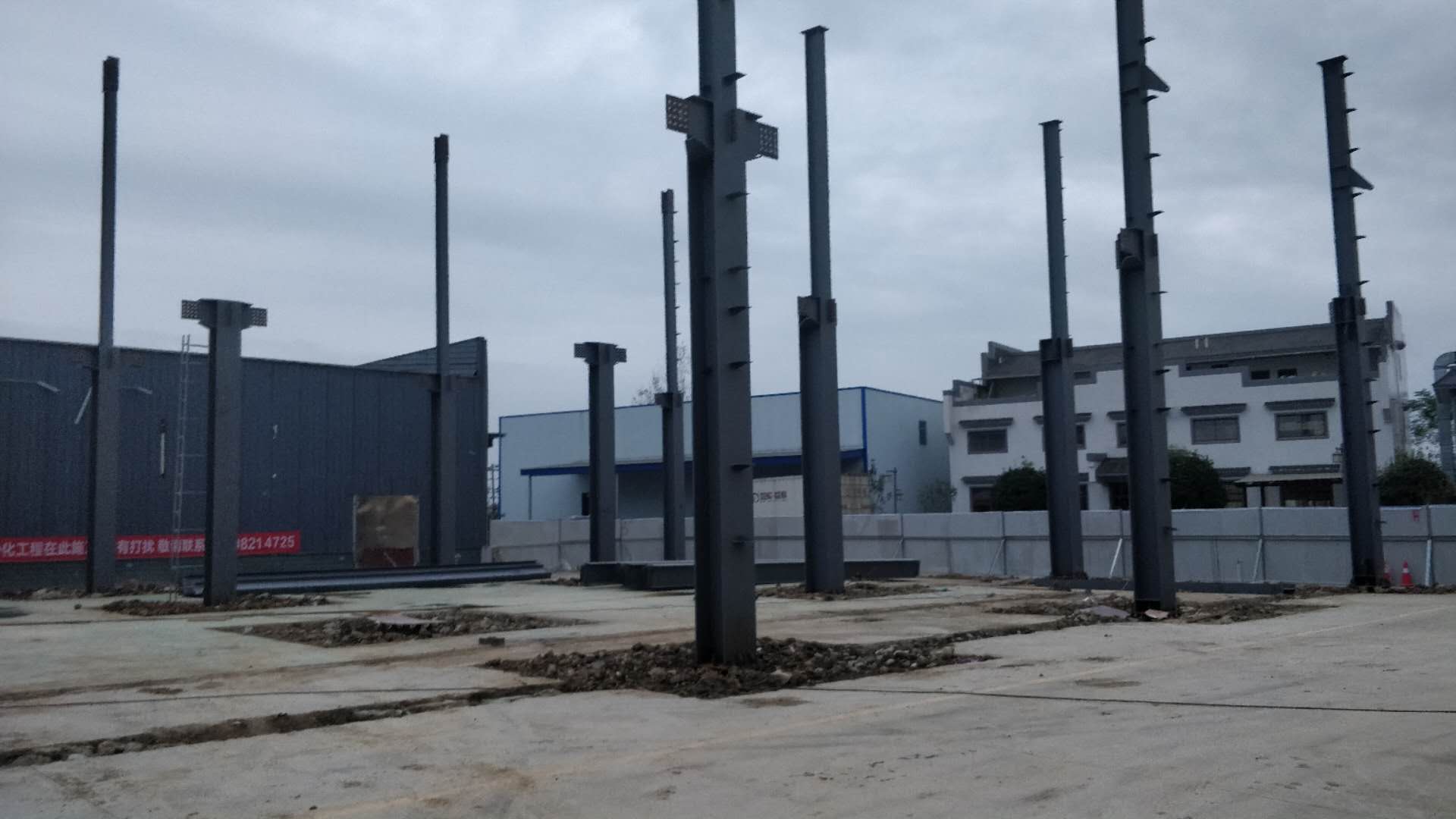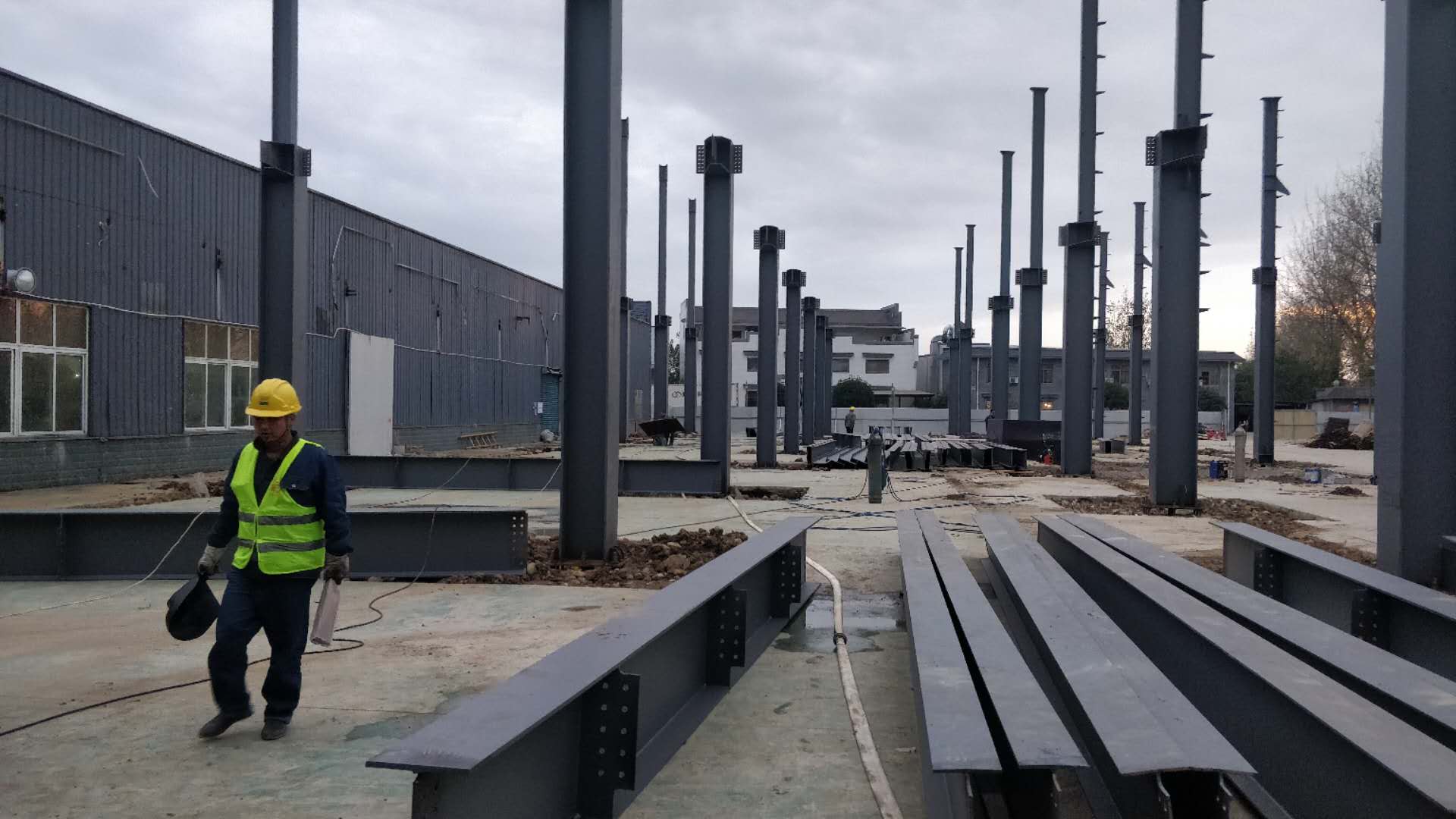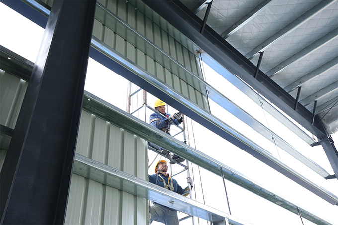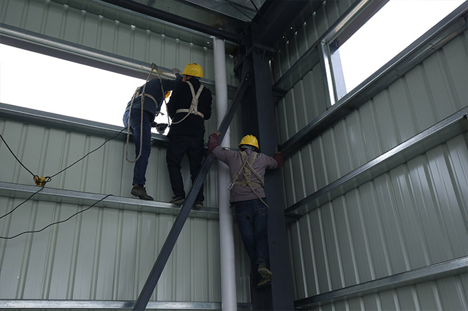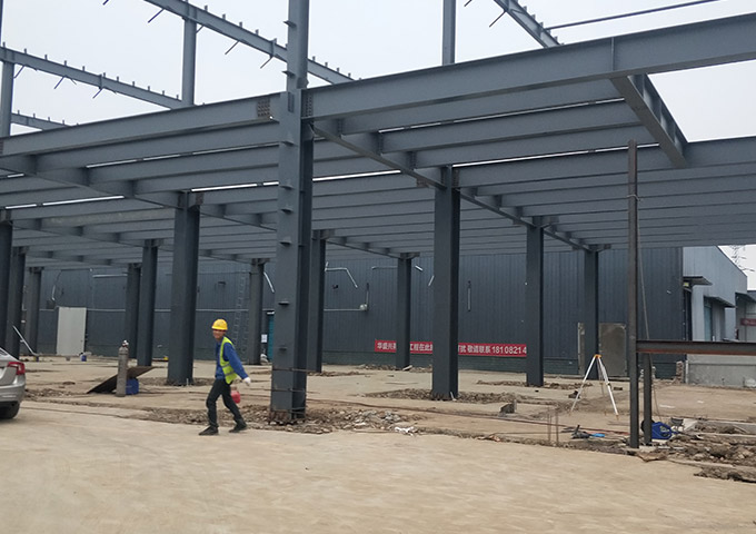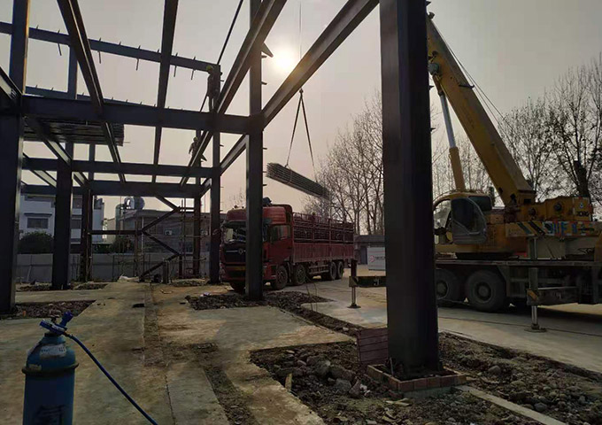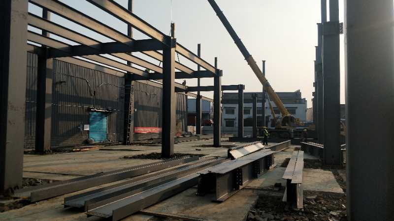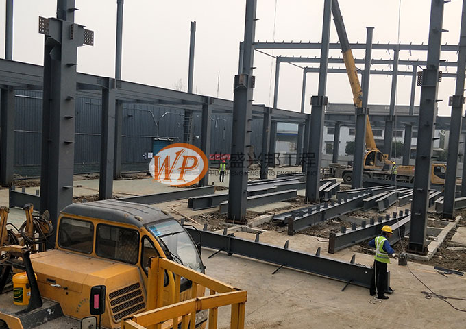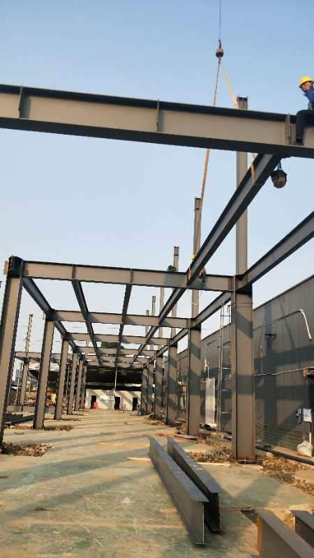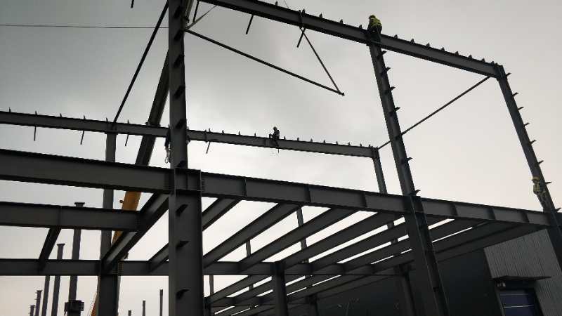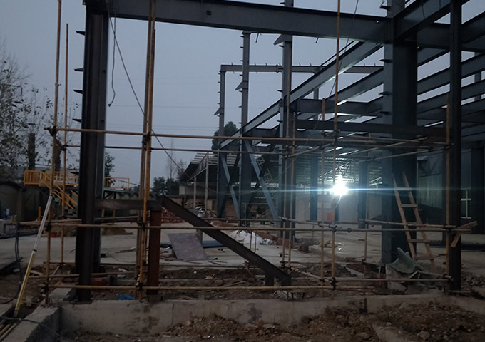 鋼構主體結構安裝完成。接下來整體校正,螺栓終擰,節點焊接,油漆工作。