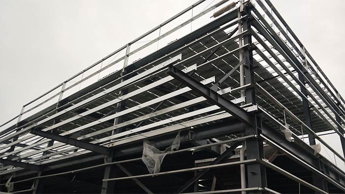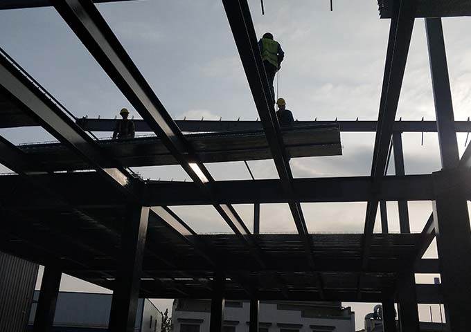 1.螺栓終擰完成100%;2.節點焊接完成100%;3.柱間支撐完成20%;4.鋼樓梯完成25%;5.樓承板進場