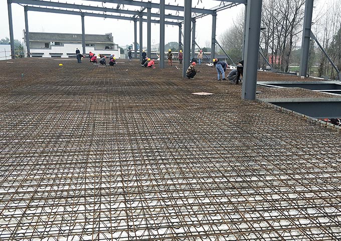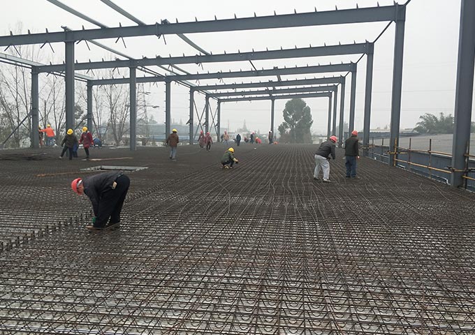 1.二層樓板混凝土完成100%;2.樓板鋼筋綁扎完成100%;3.墻檁條安裝完成20%;4.二樓水電預埋完成100%;5.二樓金剛砂完成30%