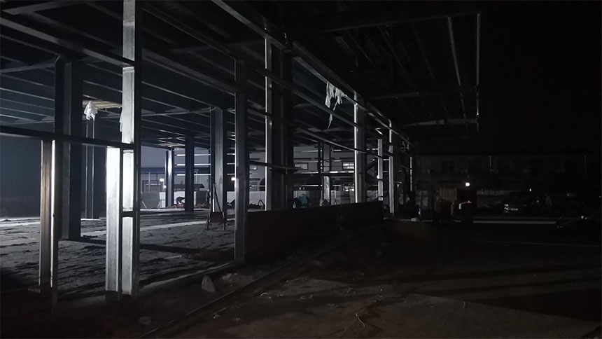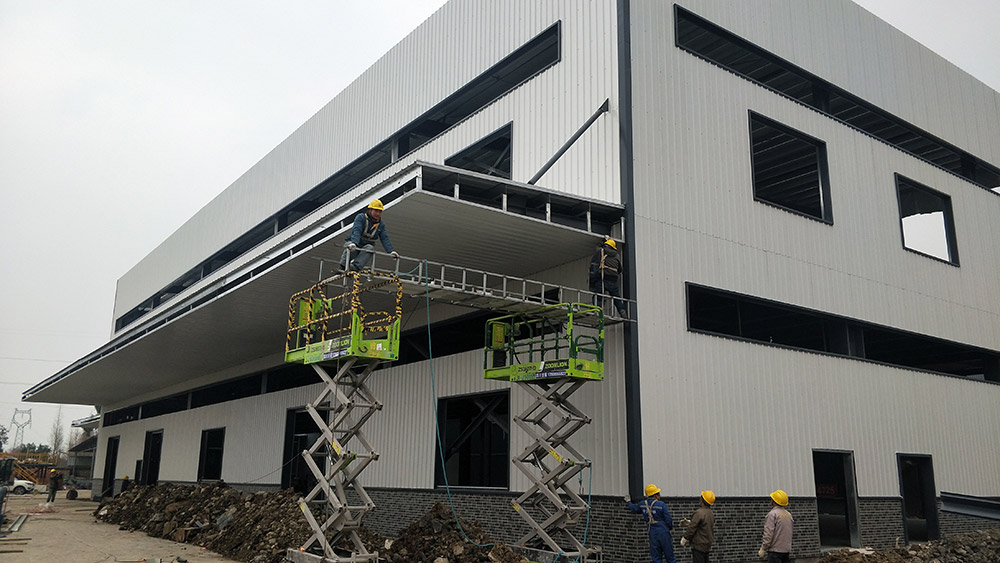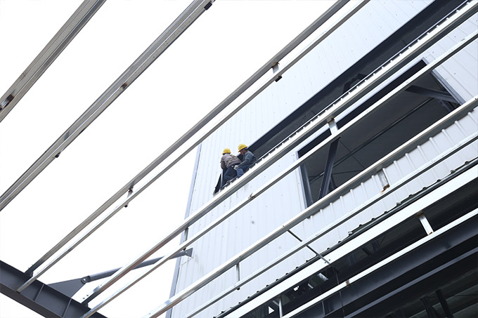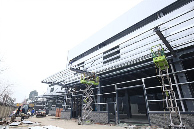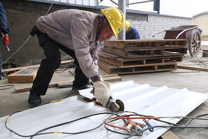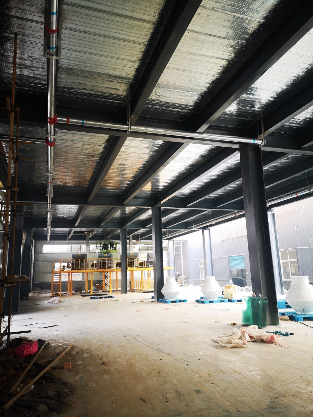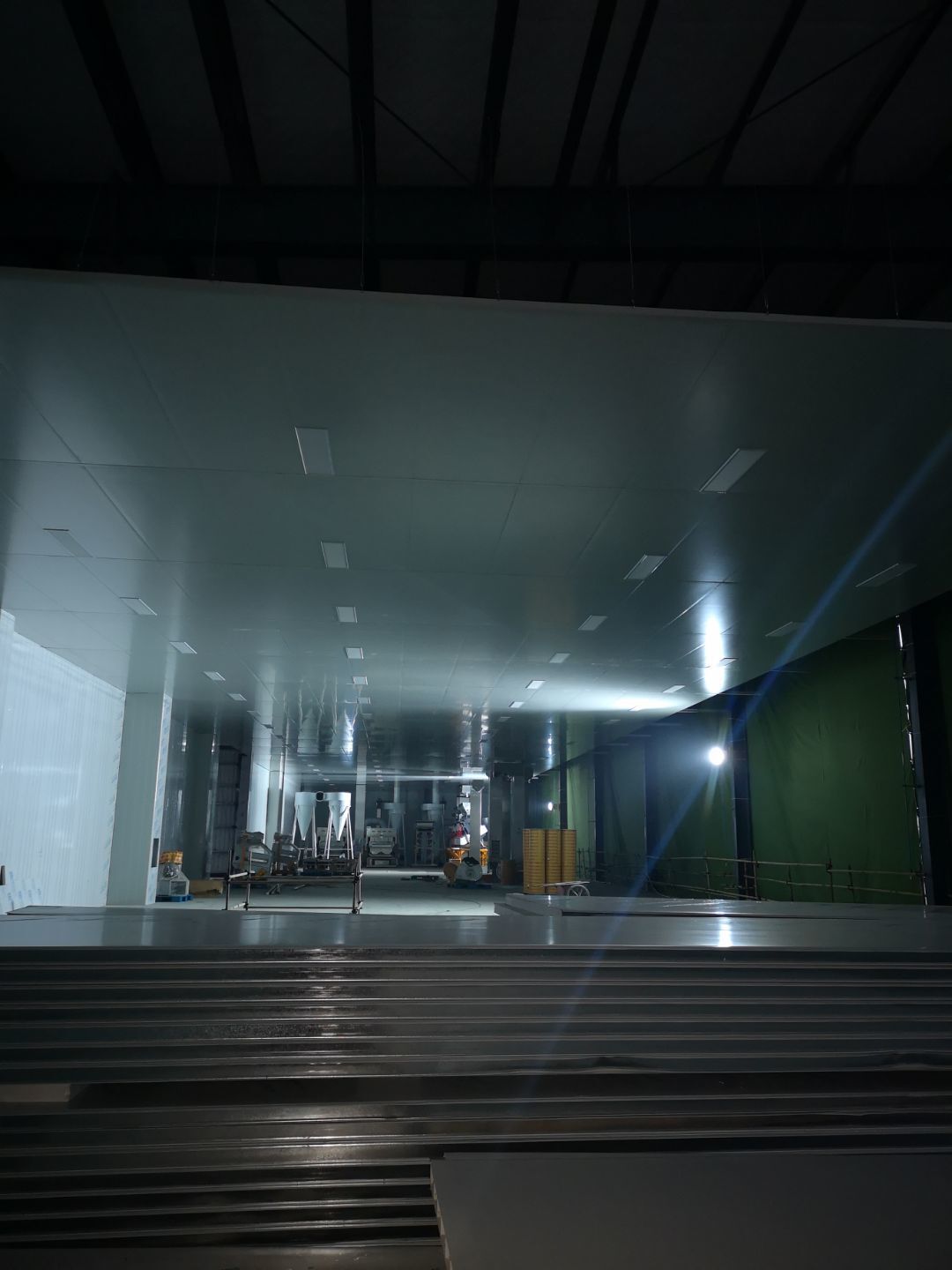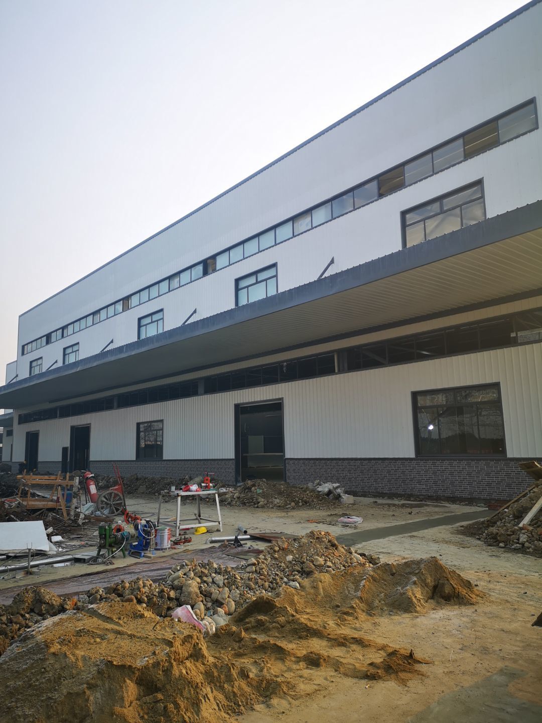 廠房外觀裝玻璃,內裝彩鋼板到現場,隔斷開始施工