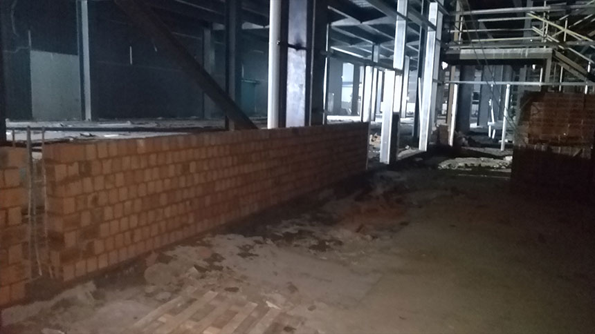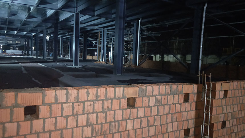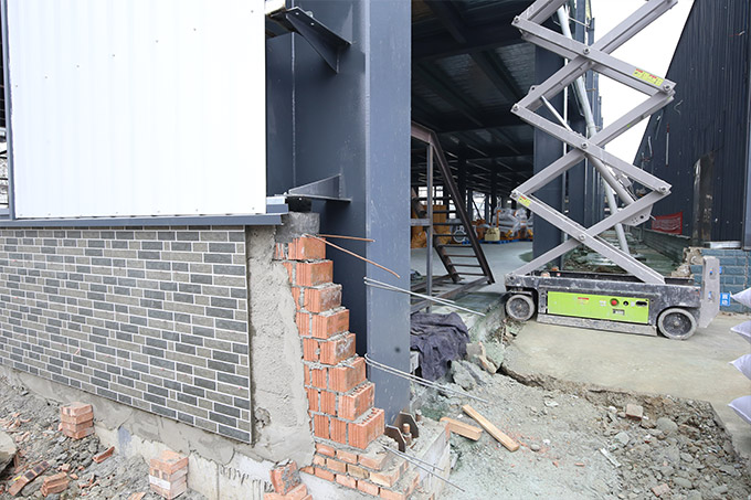 1.鋼構墻面工程完成40%;2.磚墻砌筑完成60%