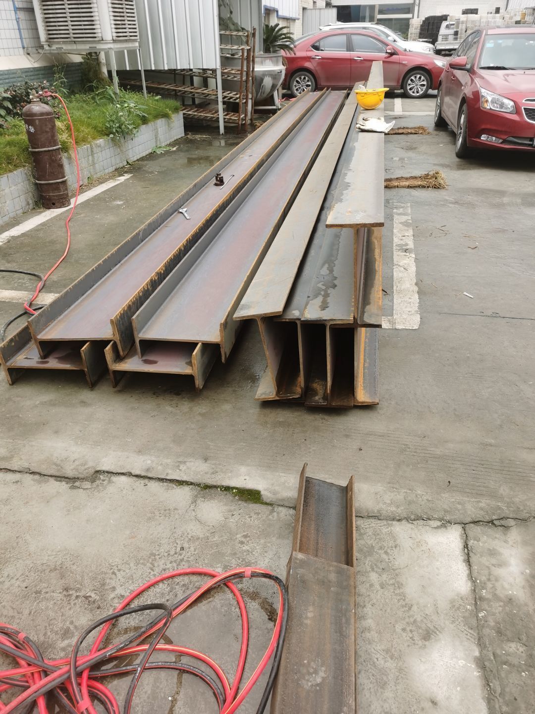今日鋼構材料進場,鋼構師傅開始下料制作
