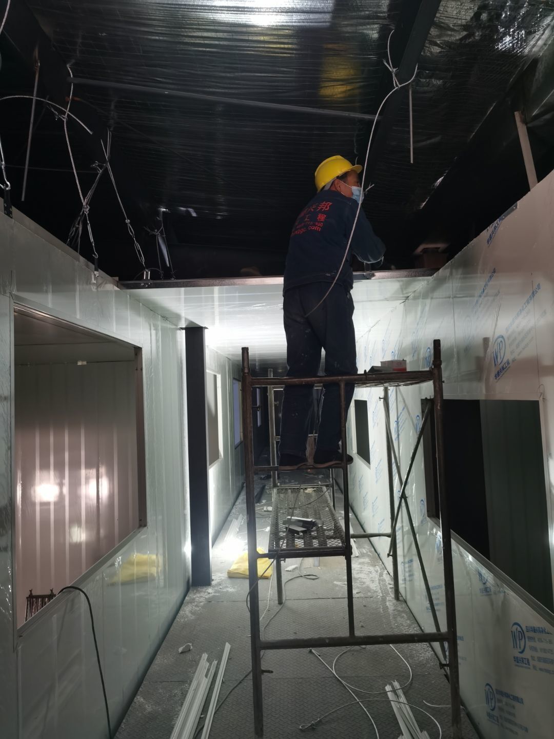 ①鋼接構完成100%②凍庫完成100%③彩鋼墻板完成90%,水電工人進場