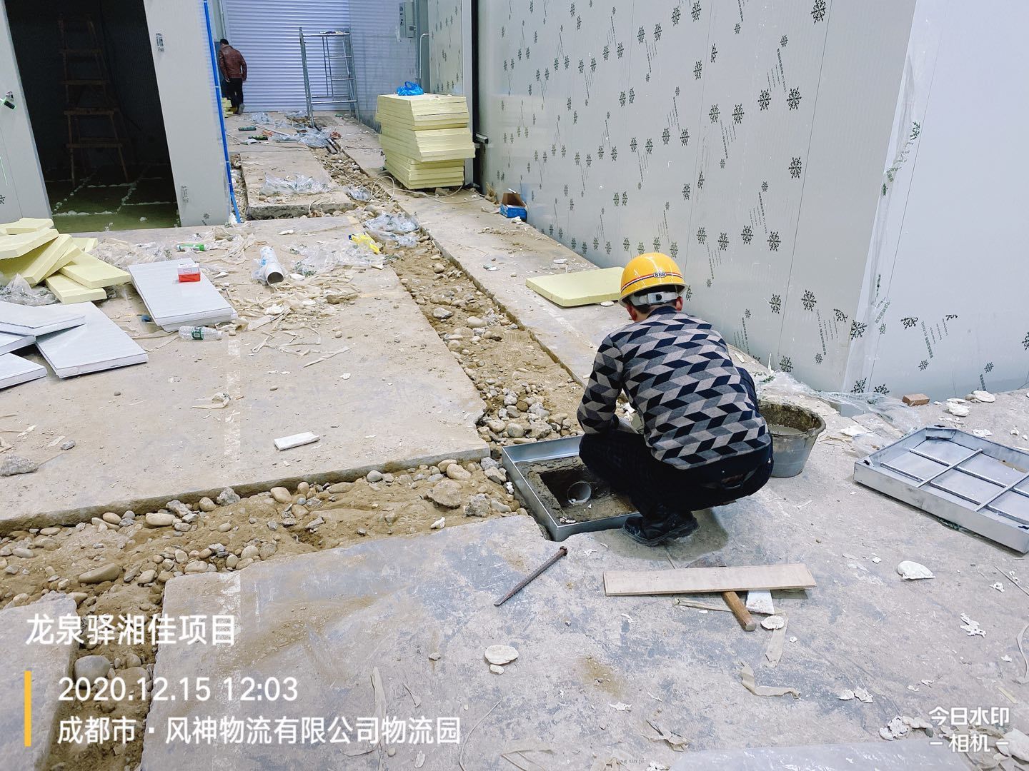 前處理間地板磚施工完成,回填土二次澆水夯實(shí)。