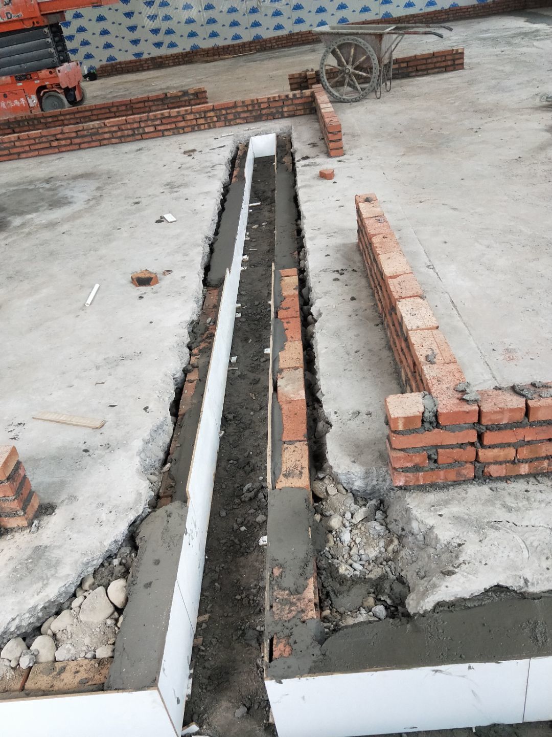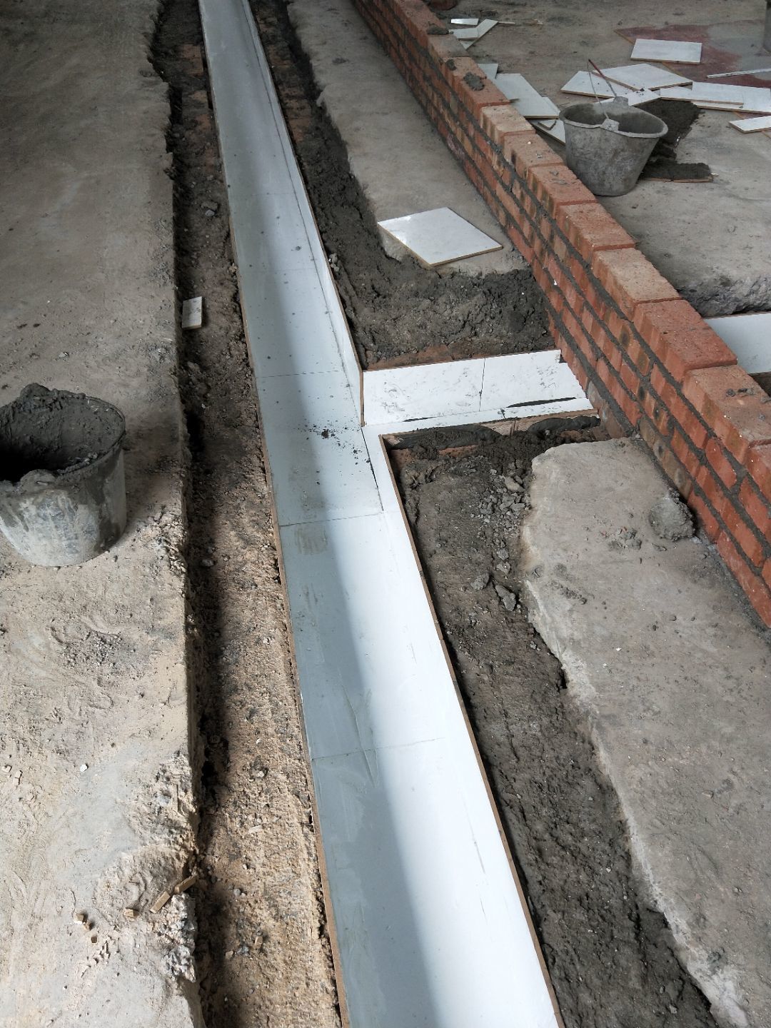 排水溝貼磚,隔斷施工