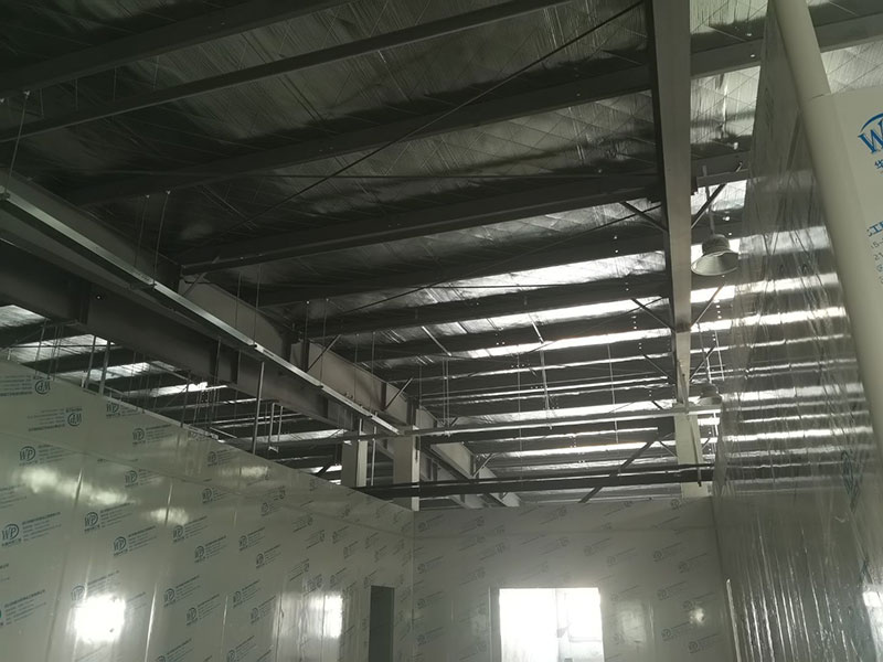 1,一樓彩板吊筋安裝 2,一樓鋼構頂刷漆 3,一層鋼構平臺焊接施工 4,一樓凍庫門體安裝 5,一樓空調新風管吊裝 6,門衛室墻體砌筑 7,電梯施工