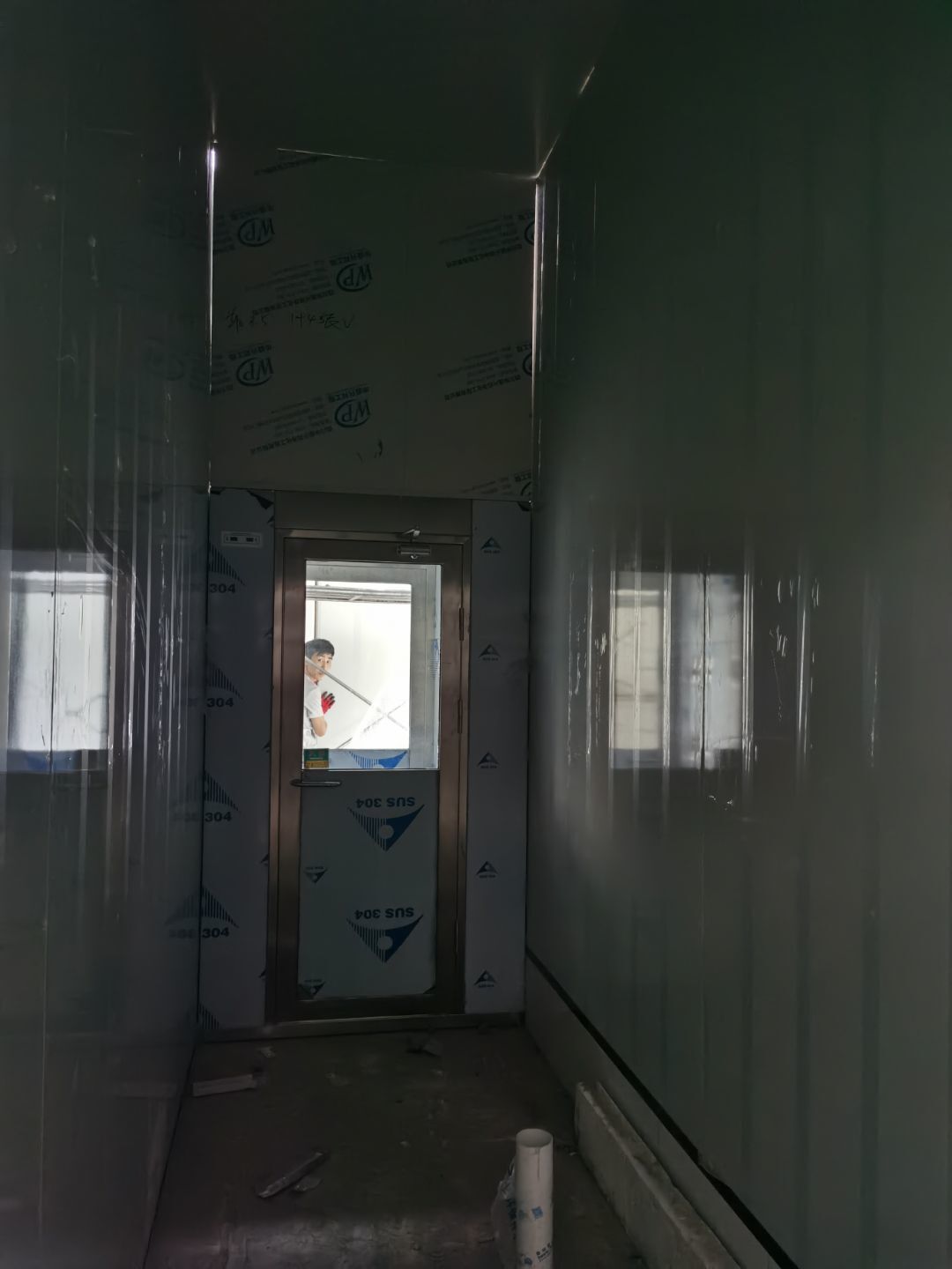 1,彩鋼墻板立板除預留設備外完成100% 2,彩鋼板吊頂除預留外,完成95% 3,三防板吊頂完成100% 4,水電安裝完成60% 5,彩鋼板收尾工作完成30%