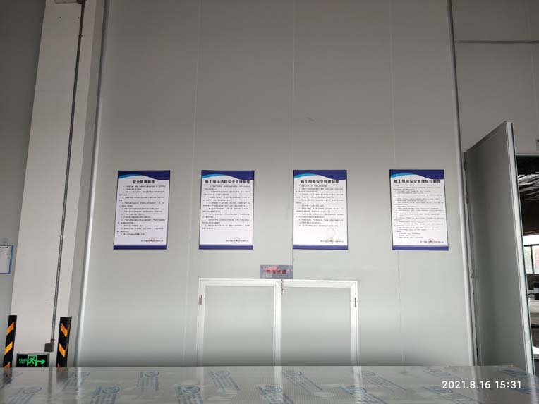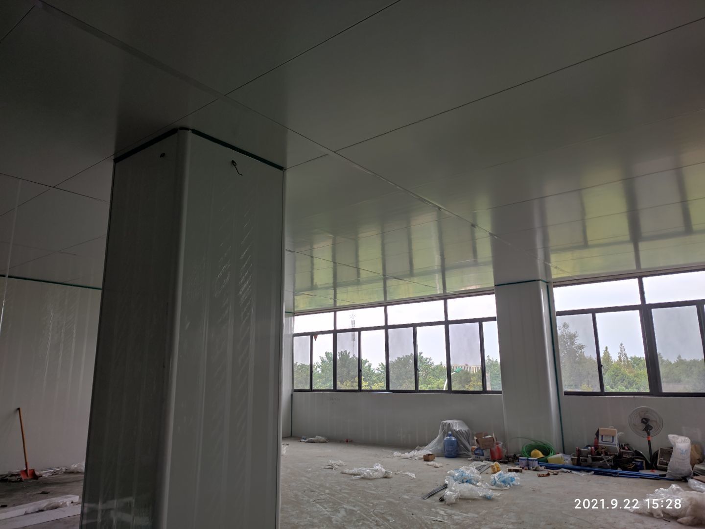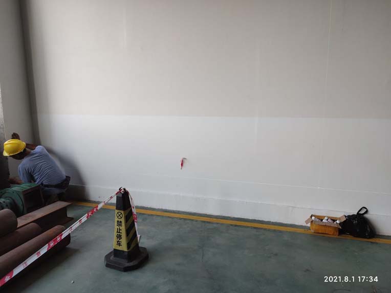 1,彩鋼板隔墻及吊頂完成,檢修門,檢修口制作安裝完成。 2,二樓圓弧完成,一樓地面剩余圓弧待甲方施工完成后再次施工)。 3,照明及普插安裝完成并通電。 4,風管室內(nèi)連接完成