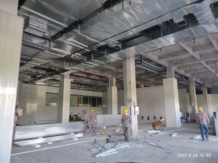 1,凈化機組鋼平臺基礎制作完成; 2,夾層剩余風管量尺寸完成。