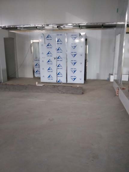 1:彩鋼墻板完成98% 2:彩鋼頂板完成100% 3:撕膜打膠完成98% 4:自制門窗完成95% 5:水電完成75% 6:圓弧完成85% 7:金剛砂完成100% 8:三防板吊頂完成100% 9:地面固化完成100% 10:動力電完成60% 11:空調安裝完成100%