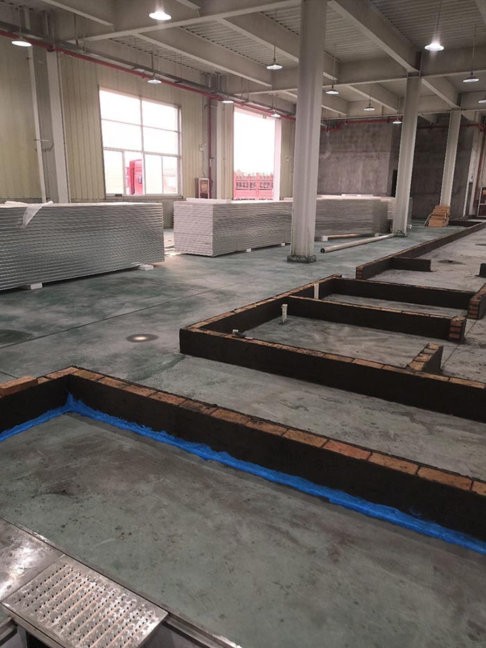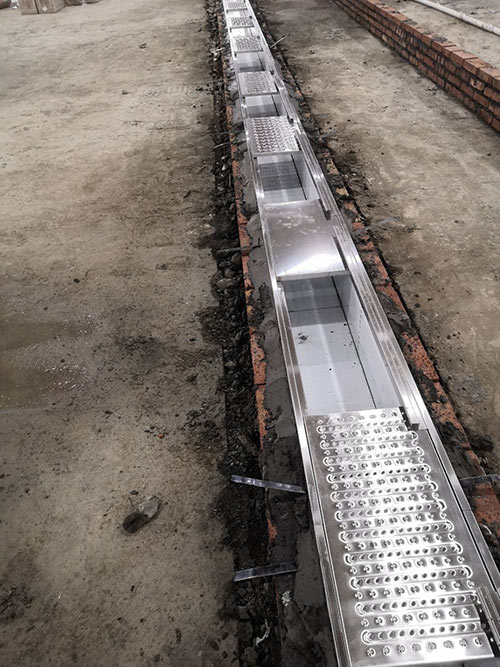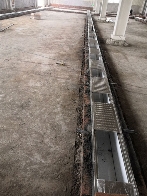1.土建墻開(kāi)門洞 2.不銹鋼溝邊條焊接加固 3.排水管不銹鋼溝邊條,不銹鋼蓋板安裝, 4.排水管貼瓷磚