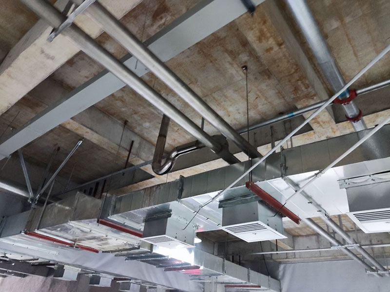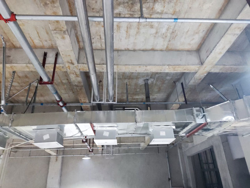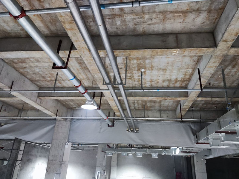 1,不銹鋼排水管安裝完成90% 2,空調(diào)水主管安裝完成70%