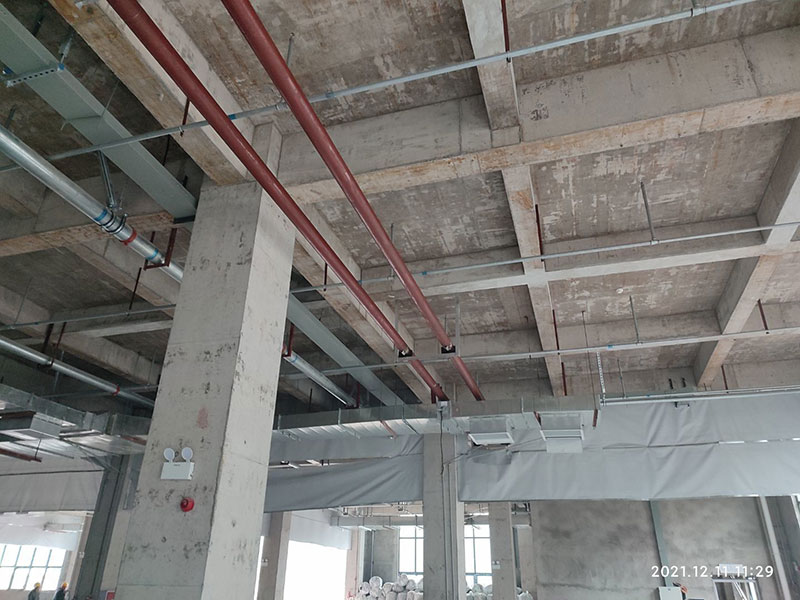1,風(fēng)管主管安裝及保溫完成80%; 2,鋼結(jié)構(gòu)構(gòu)件預(yù)制完成70%,安裝完成30%; 3,彩鋼板墻板完成3%,頂板吊筋安裝完成10%